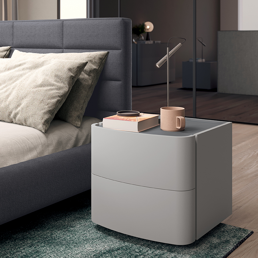 Плавные линии фасадов создают мягкий ритм, который наполняет спальню лёгкостью и гармонией. Дополнительную эксклюзивность модели придаёт столешница из керамогранита, доступная в нескольких вариантах отделки — от каменной текстуры до благородного матового эффекта.