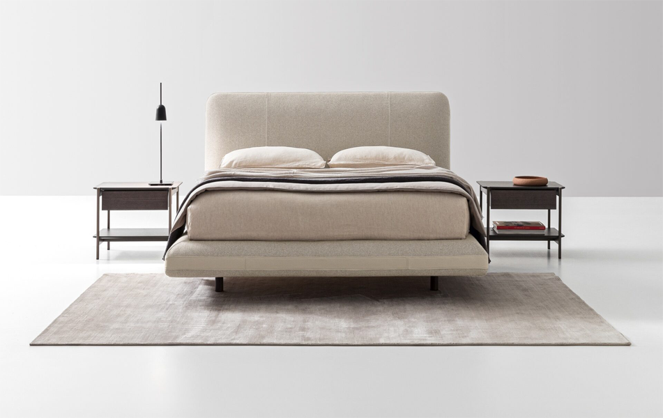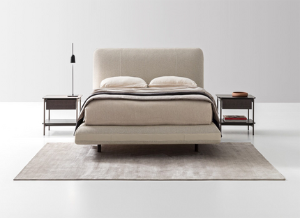 Модель Avalon сочетает изысканную мягкость округлых форм и мощный визуальный характер. Высокое изголовье, дополненное декоративной простёжкой и контрастными вставками, позволяет играть с комбинациями тканей и кожи, создавая уникальный образ спальни.