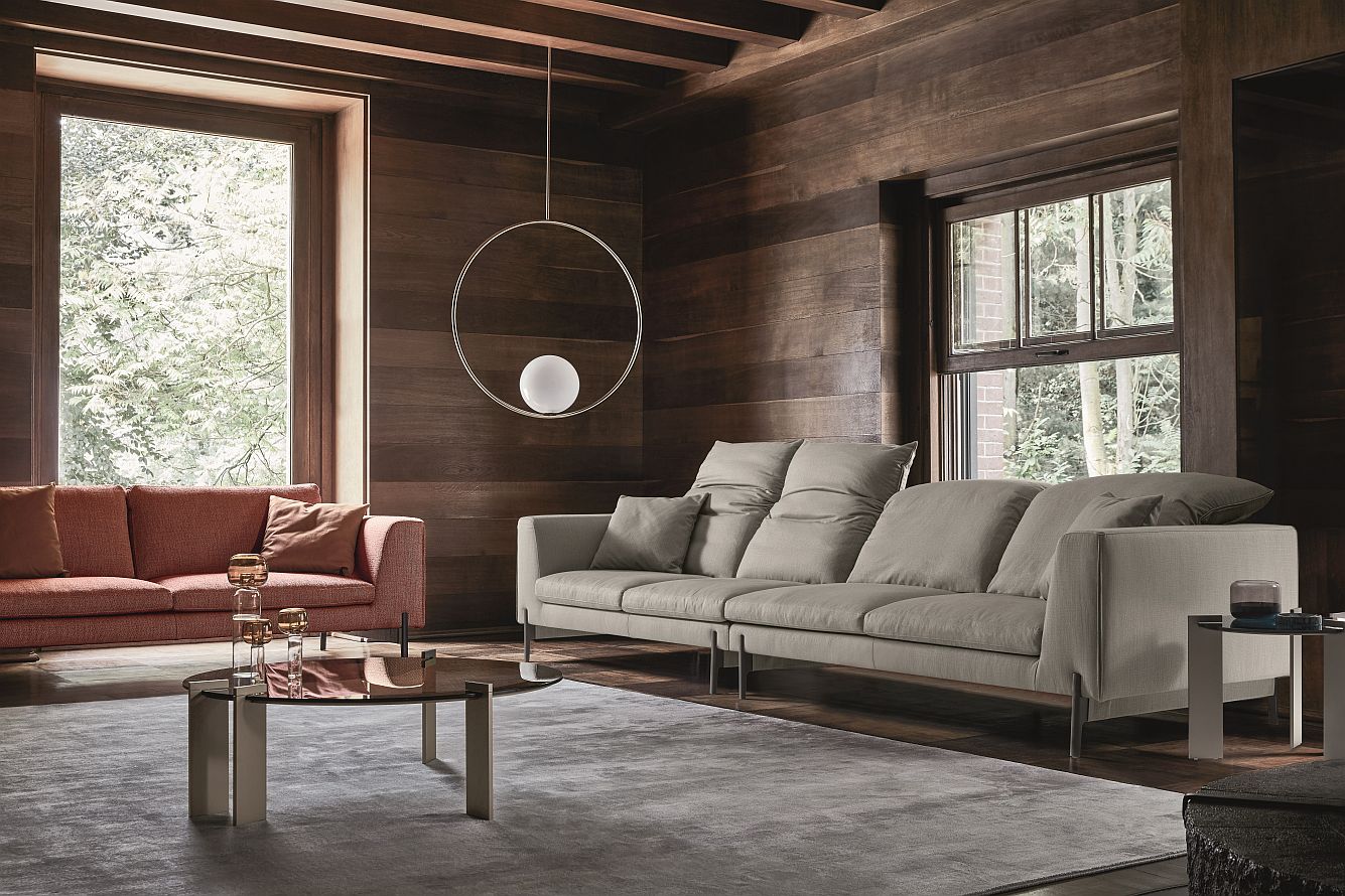 Этот вариант модели Kim от Ditre Italia отличается высокими и комфортными спинками-подушками с прогрессивным механизмом наклона, который позволяет варьировать поддержку головы. Диван превращается в персонализированное пространство для отдыха, чита и общения, сохраняющее эстетичность в каждой конфигурации.