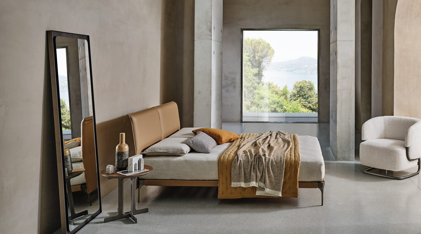 Кровать Ada словно парит в пространстве благодаря утончённому силуэту и тонкому изголовью. Её дизайн создан для современных интерьеров, где ценится свобода планировки и универсальность в использовании.