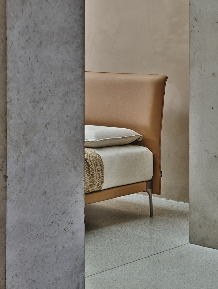 Продолжая эстетику одноимённого дивана, модель сочетает в себе неформальную мягкость и изысканный характер. Компактное изголовье и лёгкая конструкция делают Ada идеальным выбором для спальни с динамичным, адаптивным пространством.