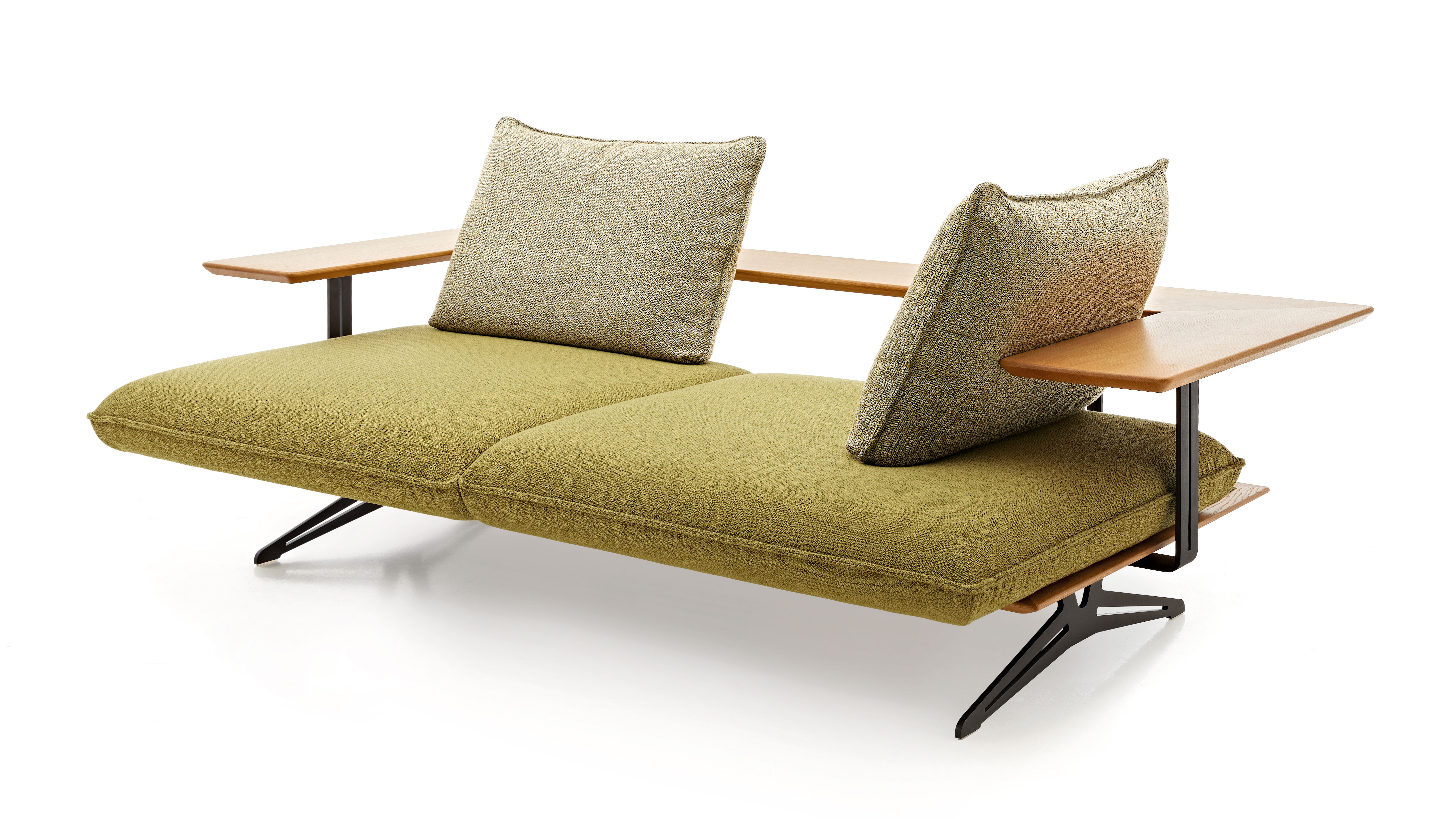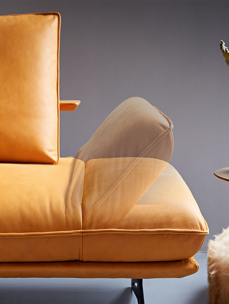 Hendson — это слияние утончённого стиля и продуманных функций. Диван оснащён моторизованной регулировкой глубины сиденья, складным открытым модулем и поворотными элементами, которые вместе с мягкой обивкой создают комфортную и адаптивную мебельную композицию.
