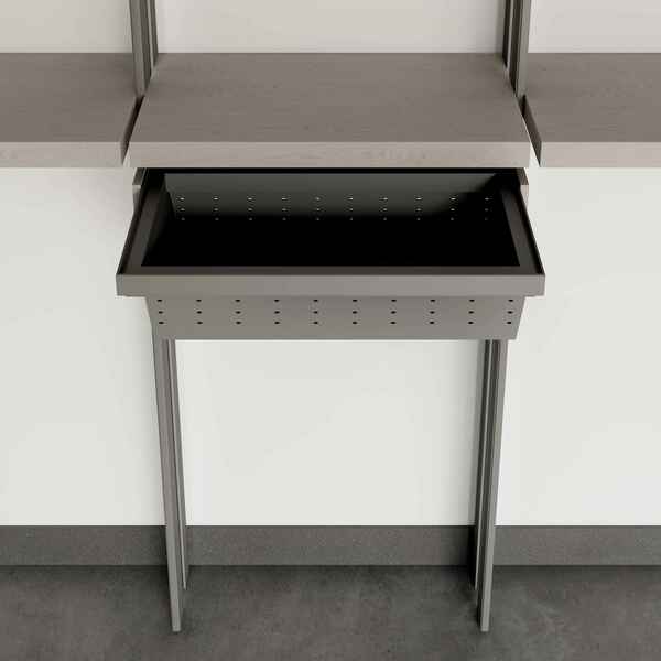 Функциональная выдвижная корзина шириной 180 мм — практичное решение для хранения мелких вещей и аксессуаров. Металлическая конструкция обеспечивает прочность и долговечность, а удобный выкатной механизм гарантирует лёгкий доступ к содержимому. Идеально вписывается в гардеробные системы DORIAN, помогая поддерживать порядок и стиль в интерьере.