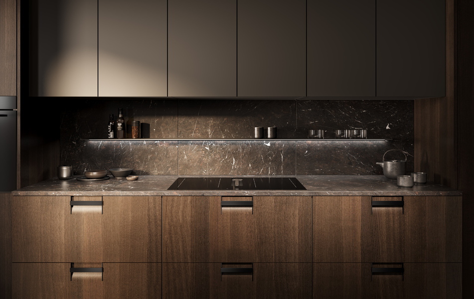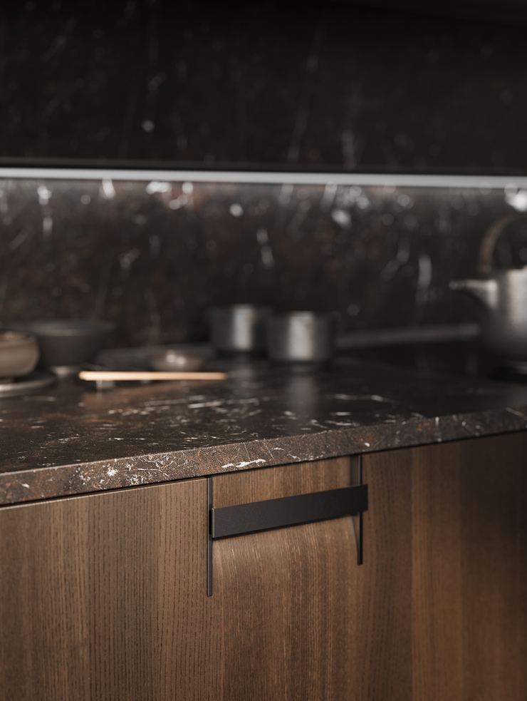 В CONCEPT Q кухня LEICHT предлагает уникальные ручки, интегрированные прямо в фасад, создавая цельный и эстетичный дизайн. Органичное сочетание ручки и волнообразного выреза подчёркивает гармонию коллекции, превращая фасады в стильный акцент кухни.
