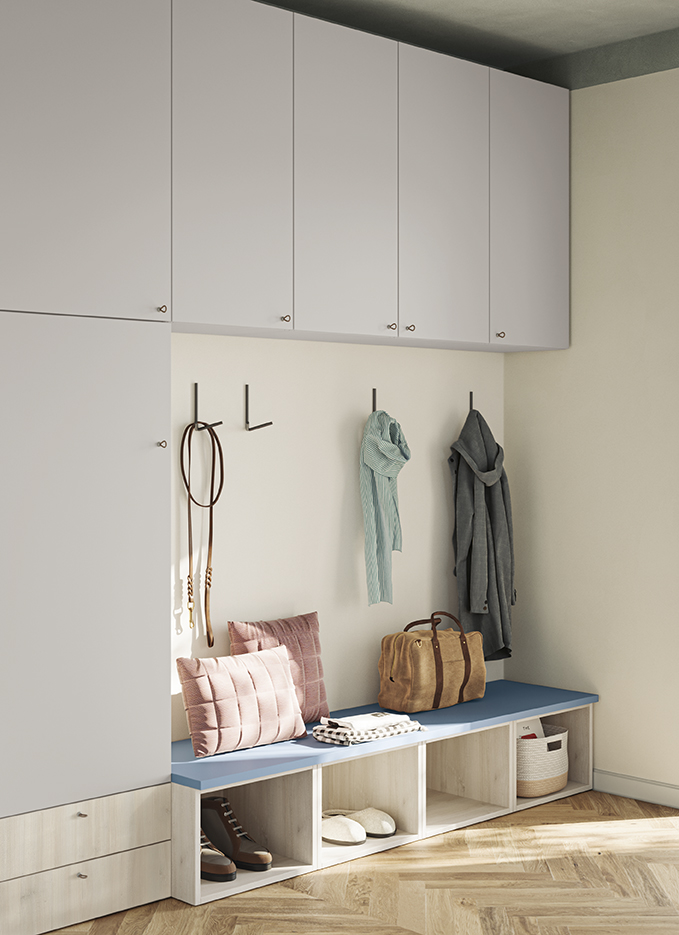 Прихожая — это первое впечатление о доме, и система Momenti помогает сделать его тёплым, стильным и по-настоящему функциональным. Модули легко адаптируются к любой планировке, позволяя создать индивидуальное решение — от компактной консоли до встроенной системы хранения с крючками, скамьёй и закрытыми секциями.
