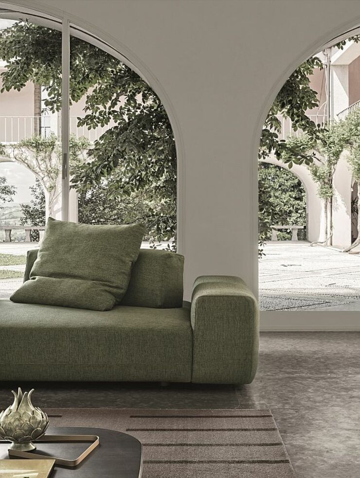 Этот модульный диван позволяет смешать оттенки одного или нескольких цветов. От чистых контрастов до плавных переходов — Sanders дарит возможность создать интерьер, который открыт к изменениям и вашим идеям.