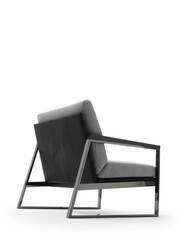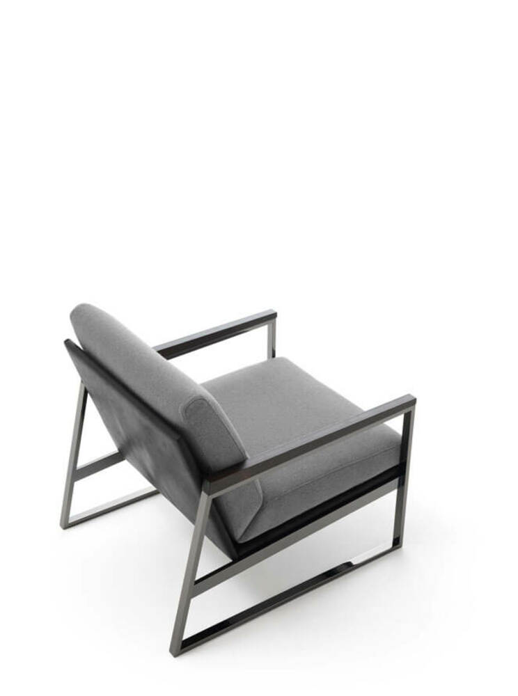 Кресло Daytona объединяет прочную металлическую конструкцию с чёрной никелированной отделкой и тёплые деревянные подлокотники, создавая изысканный баланс материалов. Его минималистичный, но выразительный дизайн органично вписывается как в гостиную, так и в спальню, добавляя пространству нотку утончённости и современного характера.