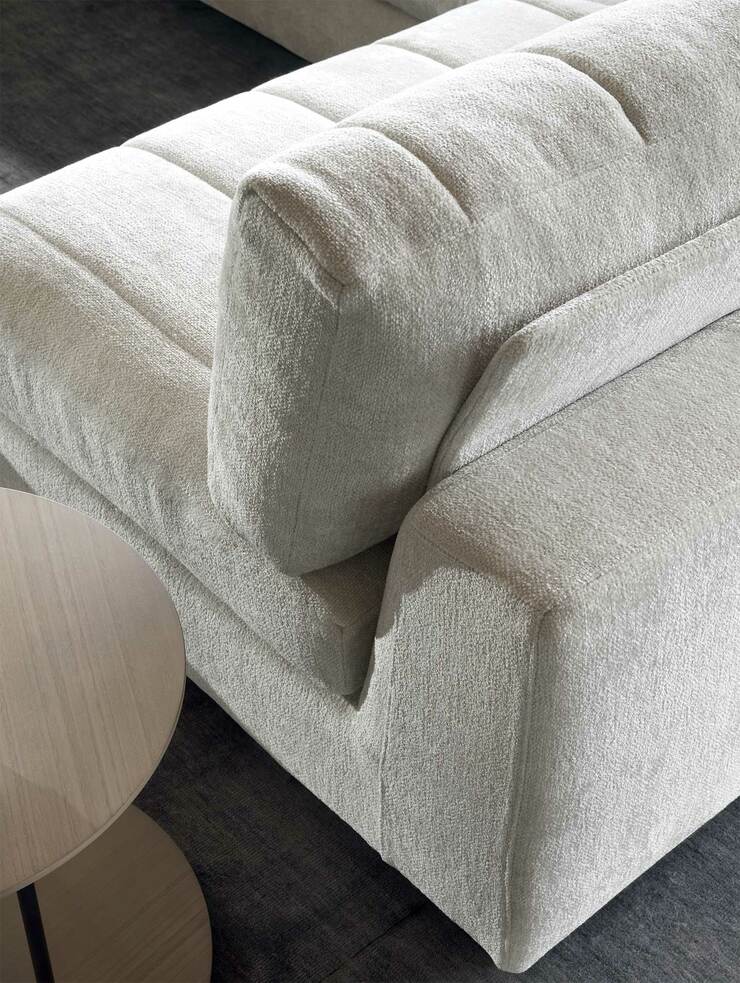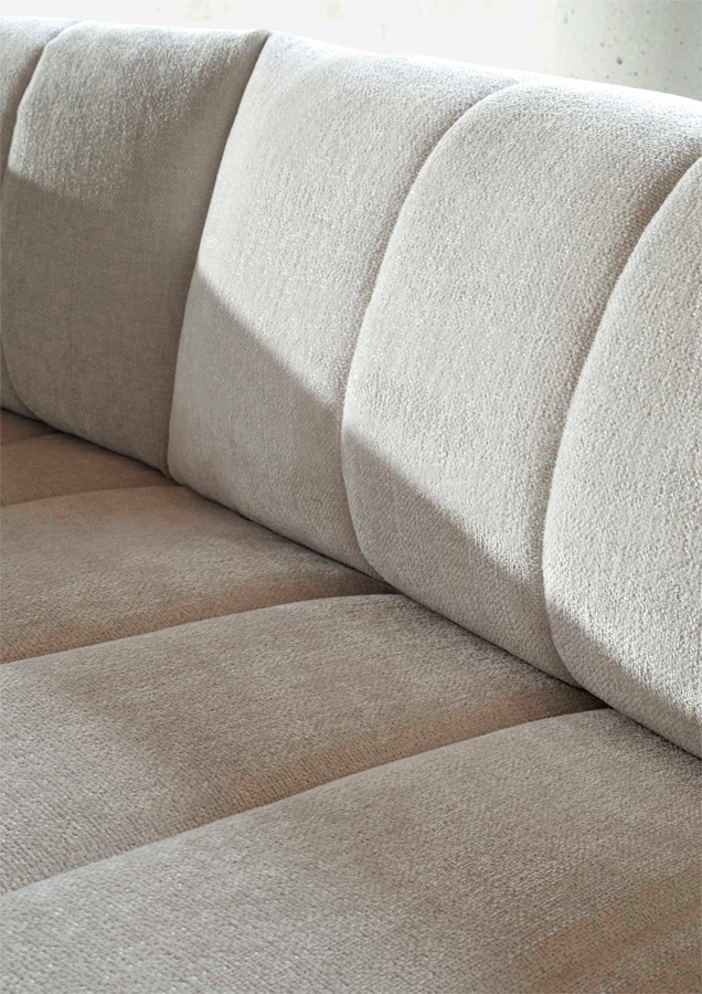 Вертикальные акценты и плавные формы придают Luvon индивидуальность и особую выразительность. Благодаря гибкой модульной системе он легко трансформируется — от лаконичного прямого дивана до просторного шезлонга. Luvon создаёт атмосферу спокойствия и безмятежности, идеально вписываясь в современные интерьеры.