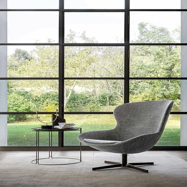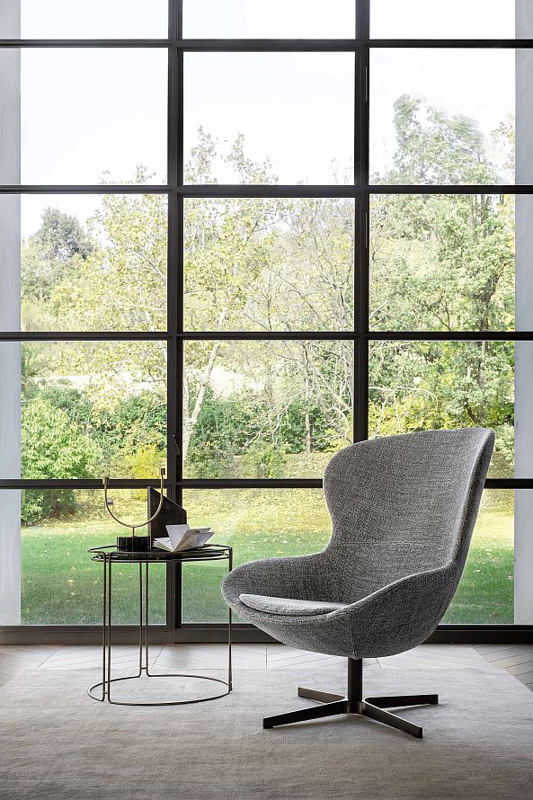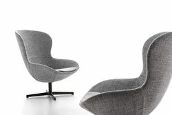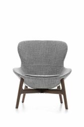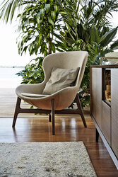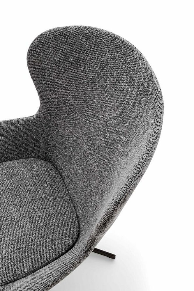 Эта модель сочетает мягкие округлые формы с тщательно продуманными габаритами, что делает кресло одновременно выразительным и комфортным. Доступное в текстильной или кожаной обивке, а также в оригинальной версии mix (сочетание ткани и кожи), кресло Round может быть дополнено элегантным основанием из эвкалиптового дерева, добавляющим интерьеру природного тепла и утончённости.