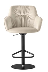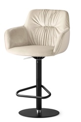 Обитая «чаша» стула установлена на металлической опоре с круглым утяжелённым основанием: конструкция надёжно держит баланс и при этом смотрится легко и современно. Встроенный газлифт позволяет плавно регулировать высоту сиденья, а механизм 360° обеспечивает свободное вращение вокруг своей оси — удобно и на кухонном острове, и у полноценной барной стойки.