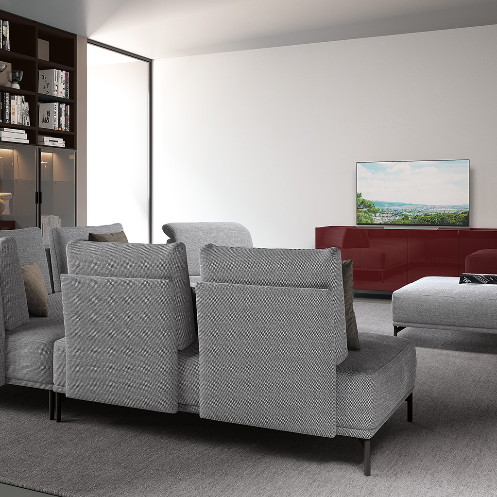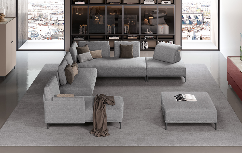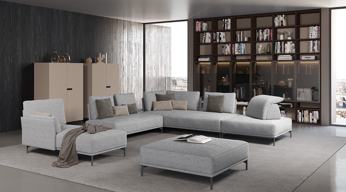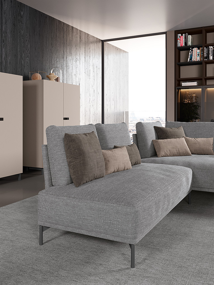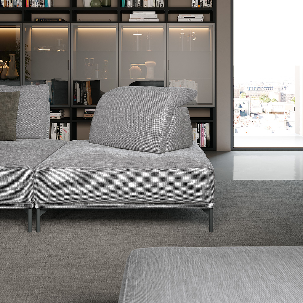 Brixton предлагает максимум композиционной гибкости. Модули с разной высотой и шириной спинок позволяют создавать абсолютно индивидуальные решения — от лаконичных прямых композиций до выразительных островных форм. Диван, который подстраивается под ваш ритм жизни.
