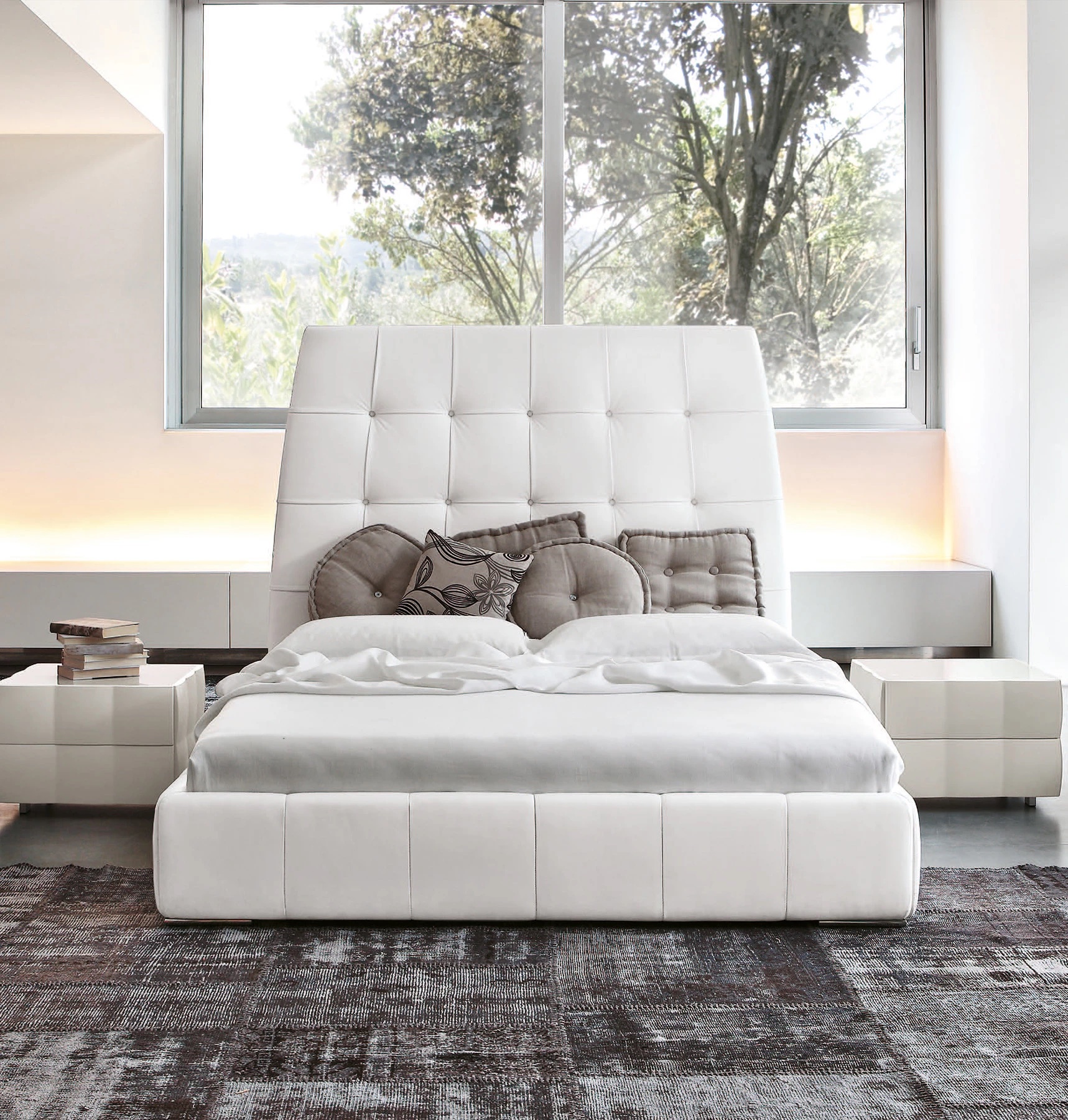 Дизайн Studio 28 для Tonin Casa привлекает внимание изысканным изголовьем, полностью обтянутым мягкой кожей, которое сразу задаёт тон всей композиции. Эта кровать создана как пространство для отдыха и медитации, объединяющее физический комфорт и эстетическое наслаждение. Pacifico — гармония форм и материалов, которая превращает спальню в место умиротворения и вдохновения.