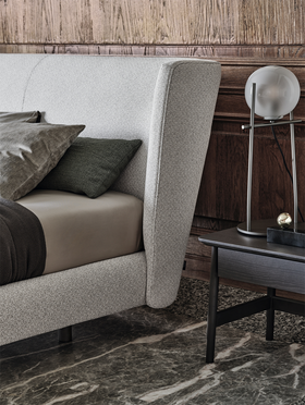 Кровать Royal очаровывает лёгкостью и изяществом: её утончённые пропорции и эффект парения в пространстве создают ощущение воздушности. Эта модель идеально вписывается в современные интерьеры, оставаясь символом сдержанной элегантности.