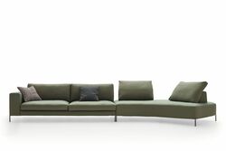 Эта система сочетает подвесные основания «монокок», подвижные подушки и журнальные столики разных размеров. Универсальная конструкция позволяет располагаться лицом к лицу или использовать диван как центр комнаты, создавая пространство для общения, отдыха и гармоничного дизайна.