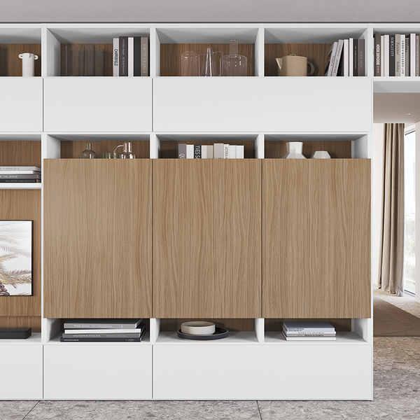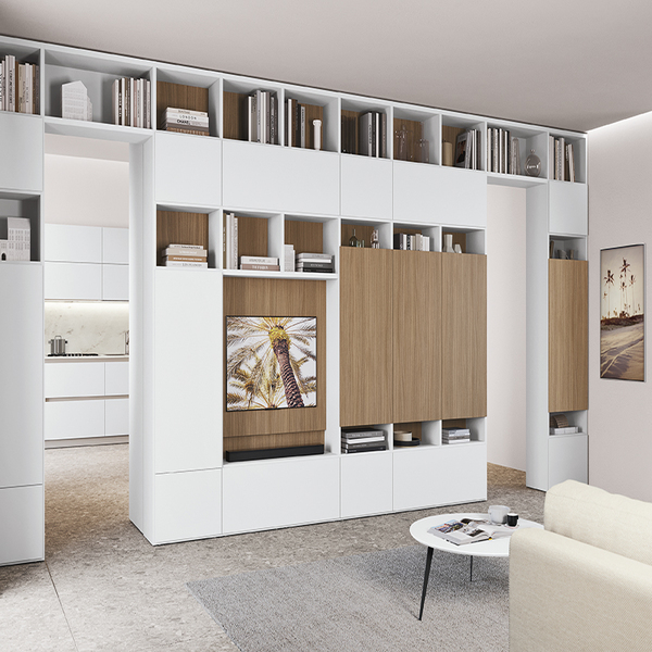 Trenta, состав 02 — тёмная лошадка с характером В этой композиции Trenta проявляет себя как эффектный и архитектурно выверенный элемент интерьера. Матовая текстура тёмных фасадов, стеклянные витрины с подсветкой и выразительный мраморный модуль под ТВ создают образ, в котором каждый штрих наполнен глубиной и стилем. Эта система идеально подойдёт для современной гостиной с акцентом на сдержанную роскошь. Закрытые модули обеспечивают аккуратное хранение, а открытые полки с внутренней отделкой тёплого оттенка добавляют визуального ритма и возможности персонализации. Trenta в тёмной палитре — это не просто функциональность. Это присутствие. Это настроение. Это дизайн, который говорит за вас.