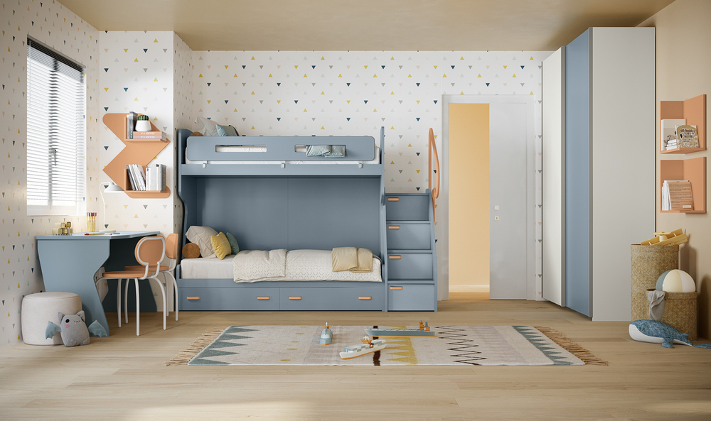 С дополнением от Colombini Casa: каждая конструктивная деталь продумана как прежде—например, «ponti & soppalchi» (мостовые переходы и антресоли), которые добавляют ребенку возможность создавать собственные уровни пространства, превращая комнату в настоящую приключенческую платформу