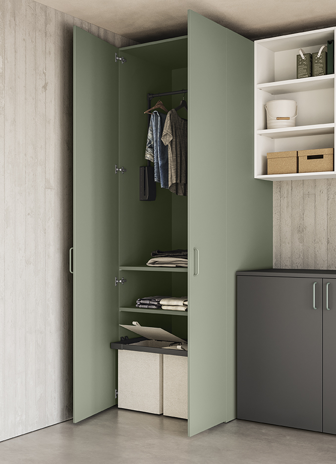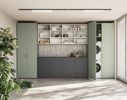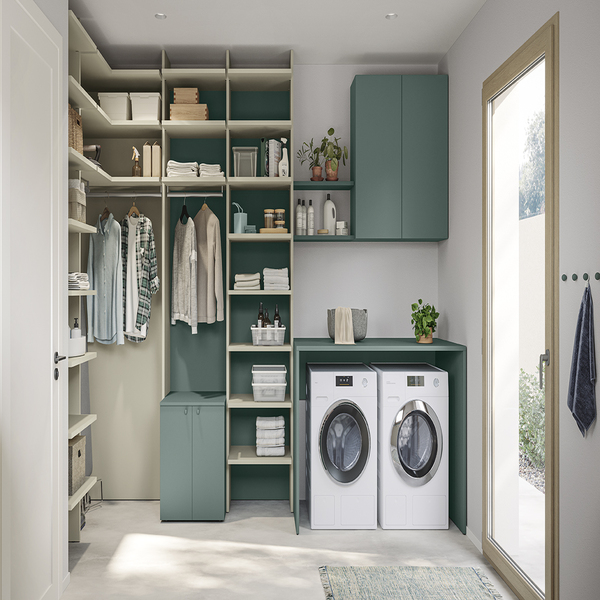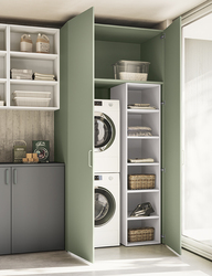 Прачечная — это больше не просто утилитарная зона. С системой Laundry от Febal Casa она становится продуманным и гармоничным продолжением интерьера, в котором практичность сочетается с эстетикой. Стирка, сушка и глажка требуют пространства, и именно здесь модульные решения позволяют организовать всё максимально удобно — будь то отдельная комната, ниша в ванной или угол в коридоре.