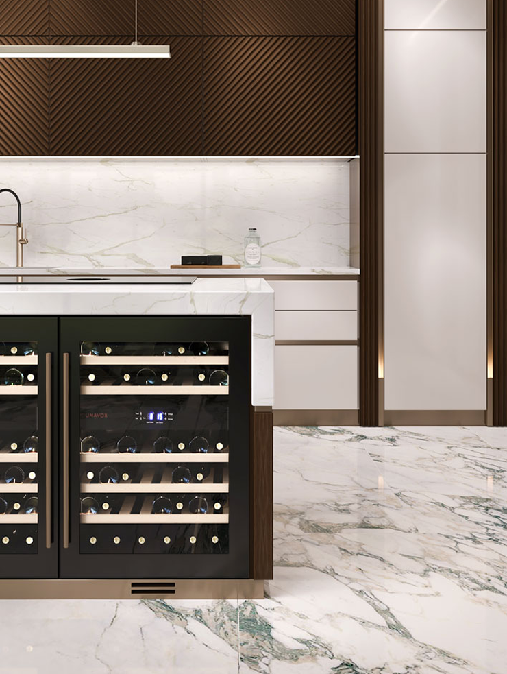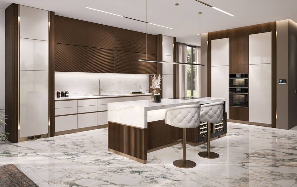Дизайн этой кухни строится на свободе выбора: каждый материал, каждая толщина и текстура адаптируются под ваш интерьер. От кухни до гостиной — единая стилистика, насыщенная тактильностью и визуальной силой. Система, которая говорит о вас больше, чем слова.