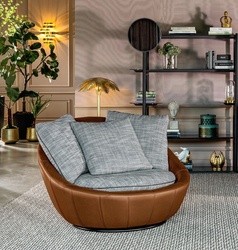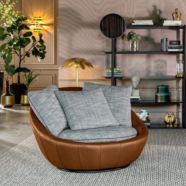 Это макси-кресло приглашает расслабиться: мягкий, обволакивающий силуэт создаёт ощущение уюта, словно в гнезде, идеально подходящем для отдыха, чтения или мечтаний. Поворотный механизм позволяет удобно менять положение, а прочный деревянный каркас из тополя, различных пород и многослойной фанеры — гарантируют надёжность и долговечность.