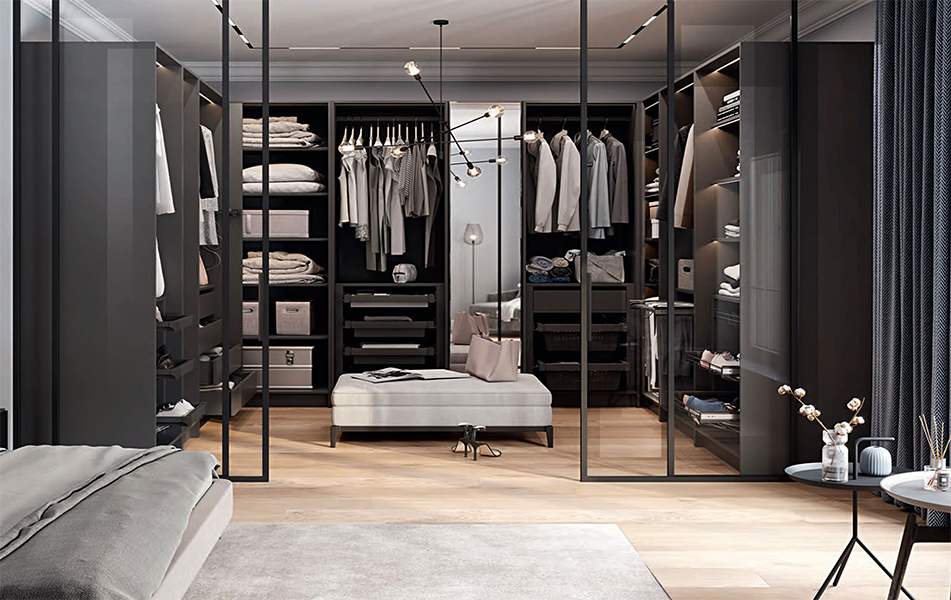 Система Modula позволяет реализовать перегородки или двери высотой до потолка — до 5000 мм. Благодаря качественной европейской фурнитуре и доводчикам в комплекте, двери Modula отличаются плавным, почти бесшумным движением и надёжностью.