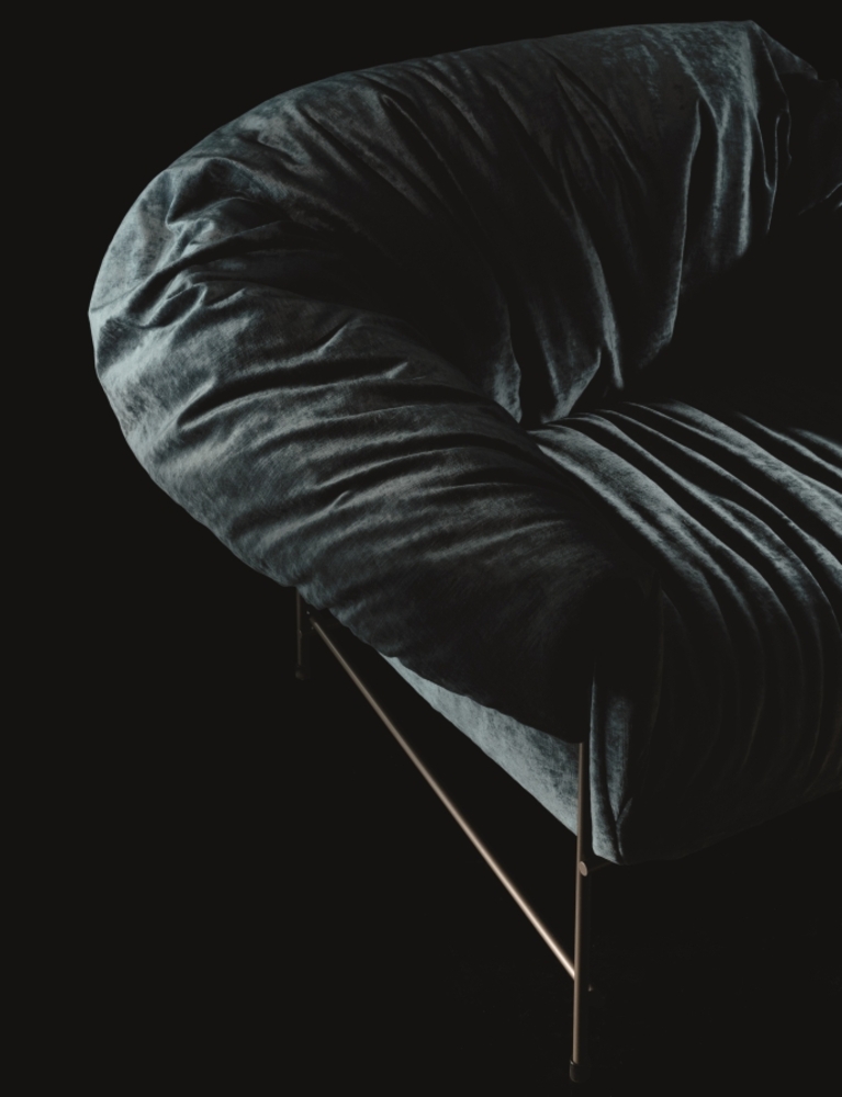 Эта модель словно отражает жест, когда мы легко бросаем пиджак или платье на кресло. Мягкая и небрежная на вид обивка создаёт ощущение уюта, а строгий металлический каркас придаёт структуре изящество и устойчивость. Контраст фактур делает Octavia особым акцентом в современном интерьере — одновременно расслабленным и утончённым.