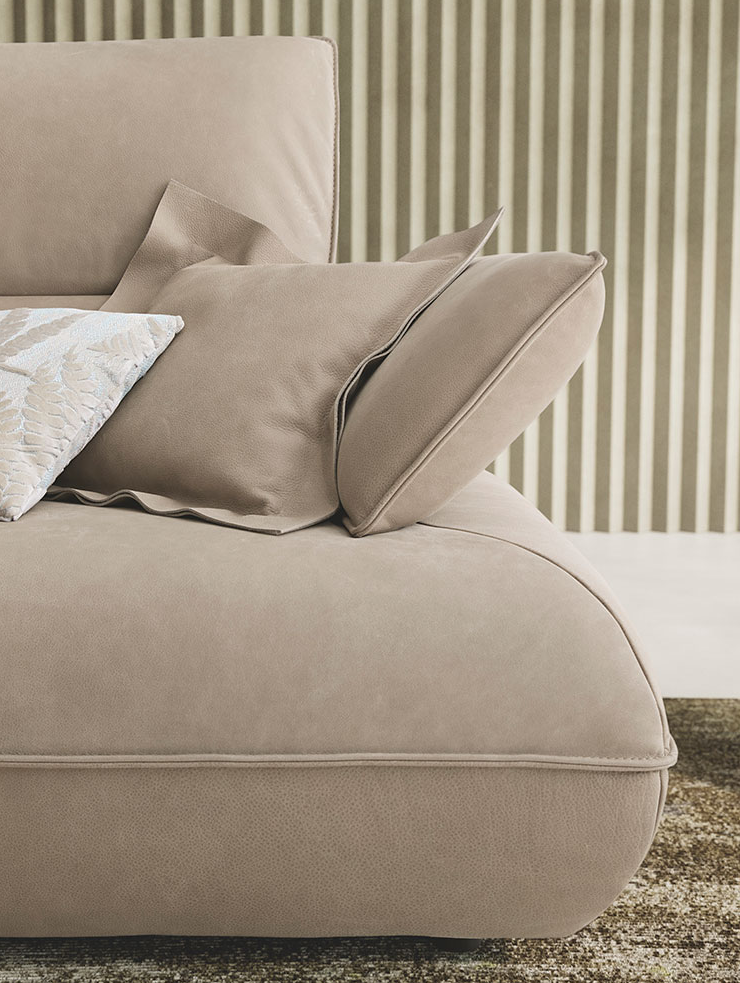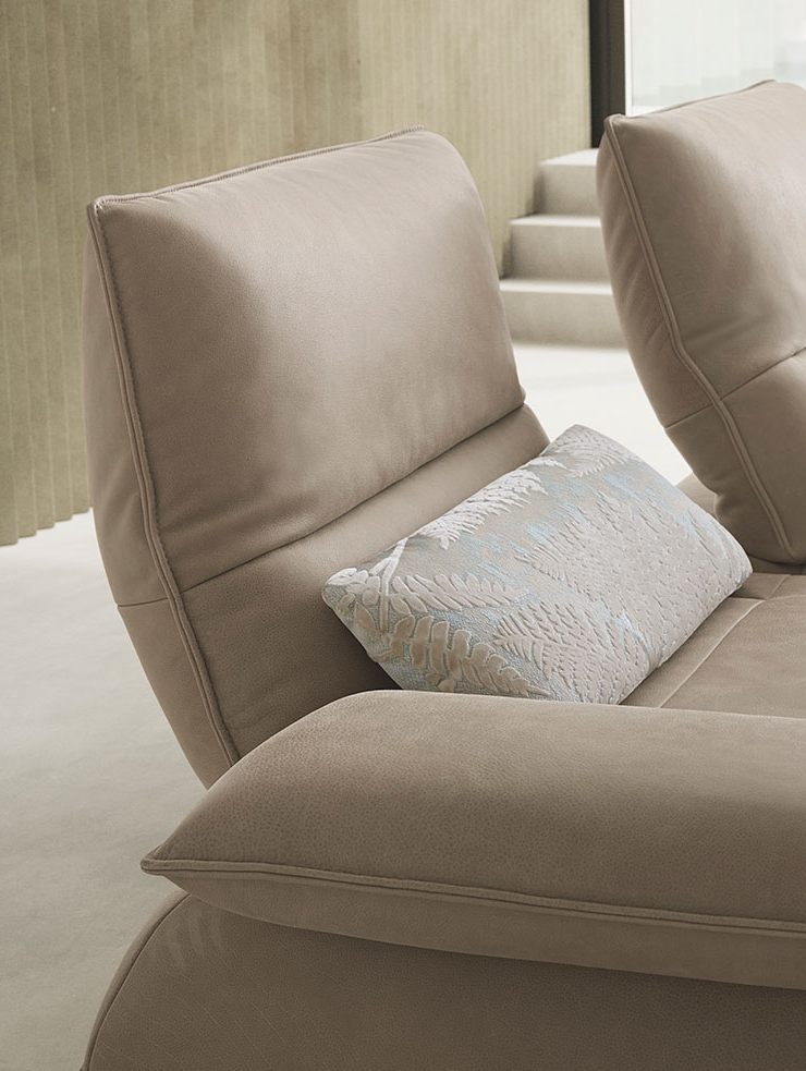 Amy оснащён регулируемыми подлокотниками, независимой системой изменения положения спинки и подголовника, а также функцией настройки глубины сиденья. Всё это позволяет адаптировать диван под ваши привычки — от чтения и работы до отдыха лёжа.