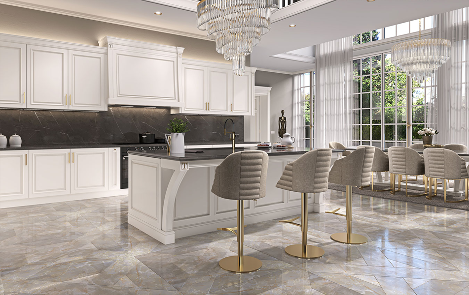 Гладкие глянцевые поверхности отражают солнечные лучи, визуально расширяя помещение и создавая ощущение лёгкости. Золотые элементы придают модели характер, делая её элегантной, но не вычурной — именно такой, какой хочется пользоваться каждый день.