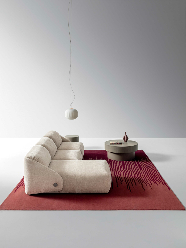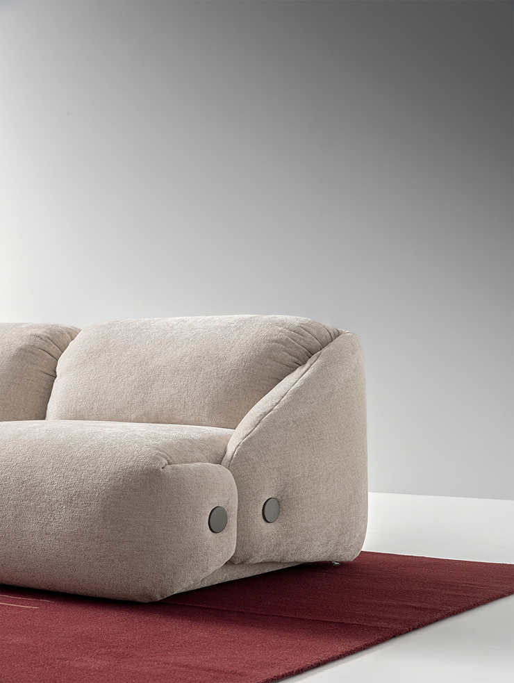 Первый диван Patrick Norguet для Ditre Italia виртуозно сочетает строгую геометрию складывания с утончённой эстетикой костюма. Складки на спинке и сиденье работают как застёжка-воротник, удерживая объёмы мягкой структуры и придавая модели мягкий, плотный образ.
