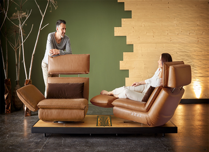 Edon оснащён поворотом до 320°, автоматической регулировкой спинки и подголовника, а также боковым сдвигом для персонализированного комфорта. Секунды — и диван становится вашей личной зоной релаксации.