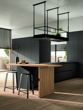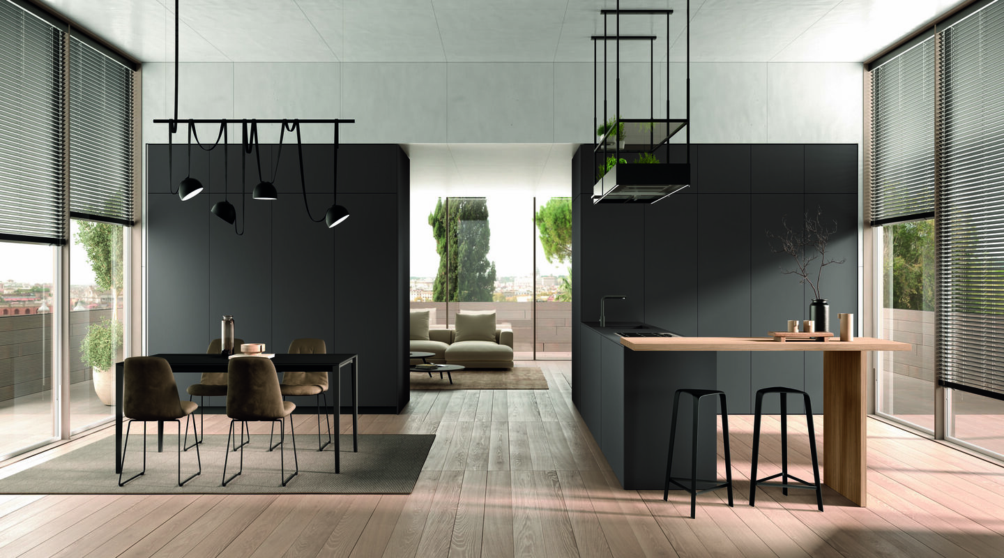 Модель Pratica L создана для современных домов, где нет чётких границ между зонами. Остров, высокие колонны и открытые модули Espace образуют динамичное и уютное пространство, в котором каждый момент — от семейного ужина до импровизированного завтрака — превращается в тёплую историю.