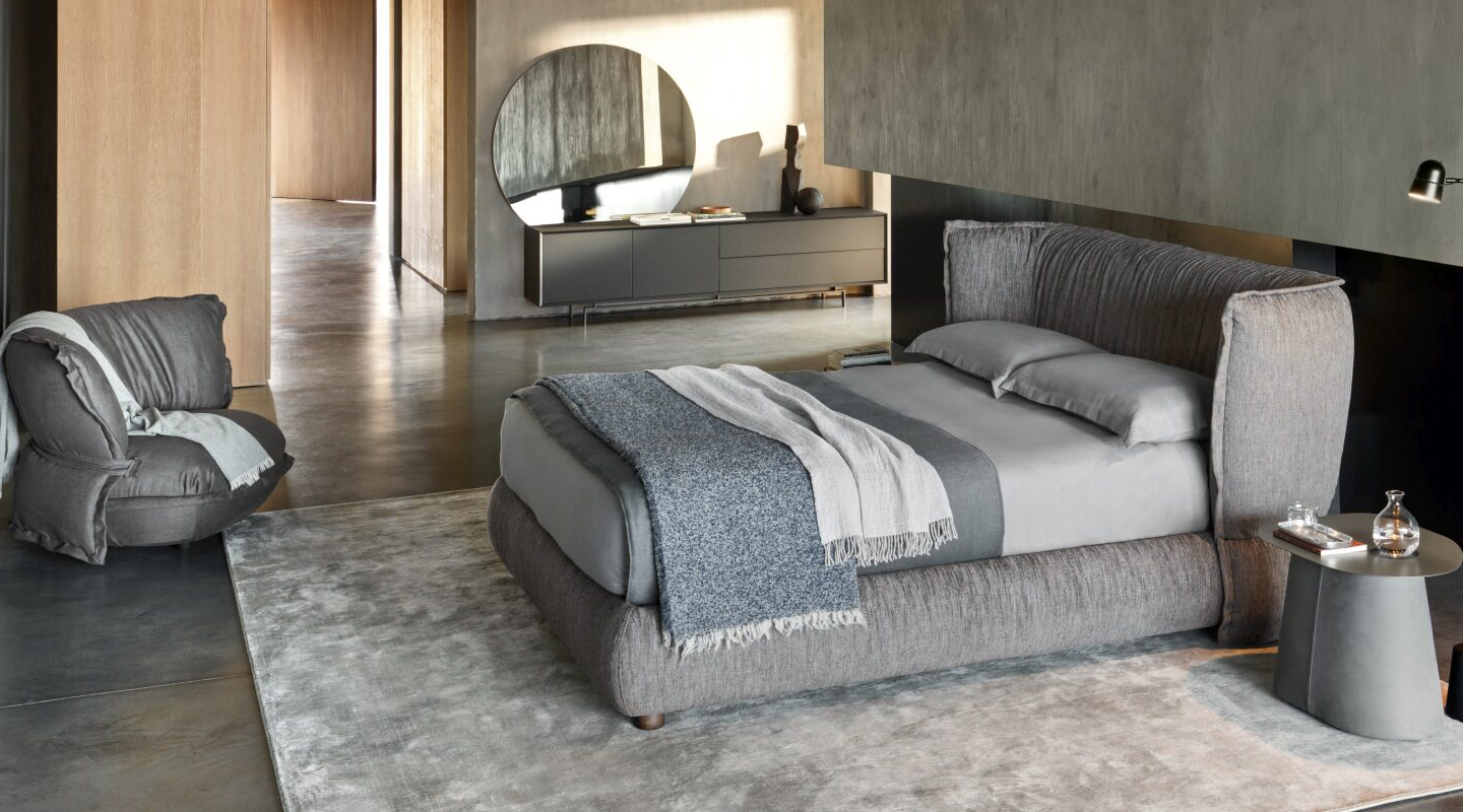 Широкая и объёмная спинка кровати создаёт ощущение защищённости и тепла. Puppet превращает привычное пространство спальни в место полного расслабления, где каждая деталь продумана ради комфорта.