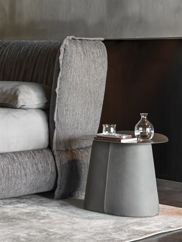 Эта модель объединяет кровать и прикроватные элементы в единую композицию. Контраст мягкости и структурной строгости превращает Puppet в дизайнерское решение, которое одновременно функционально и эстетично.