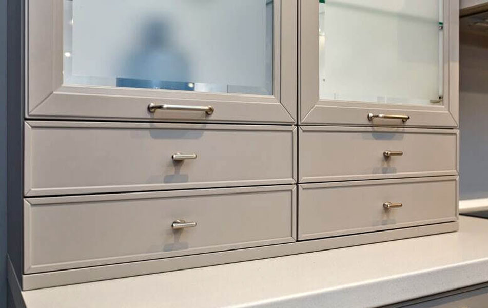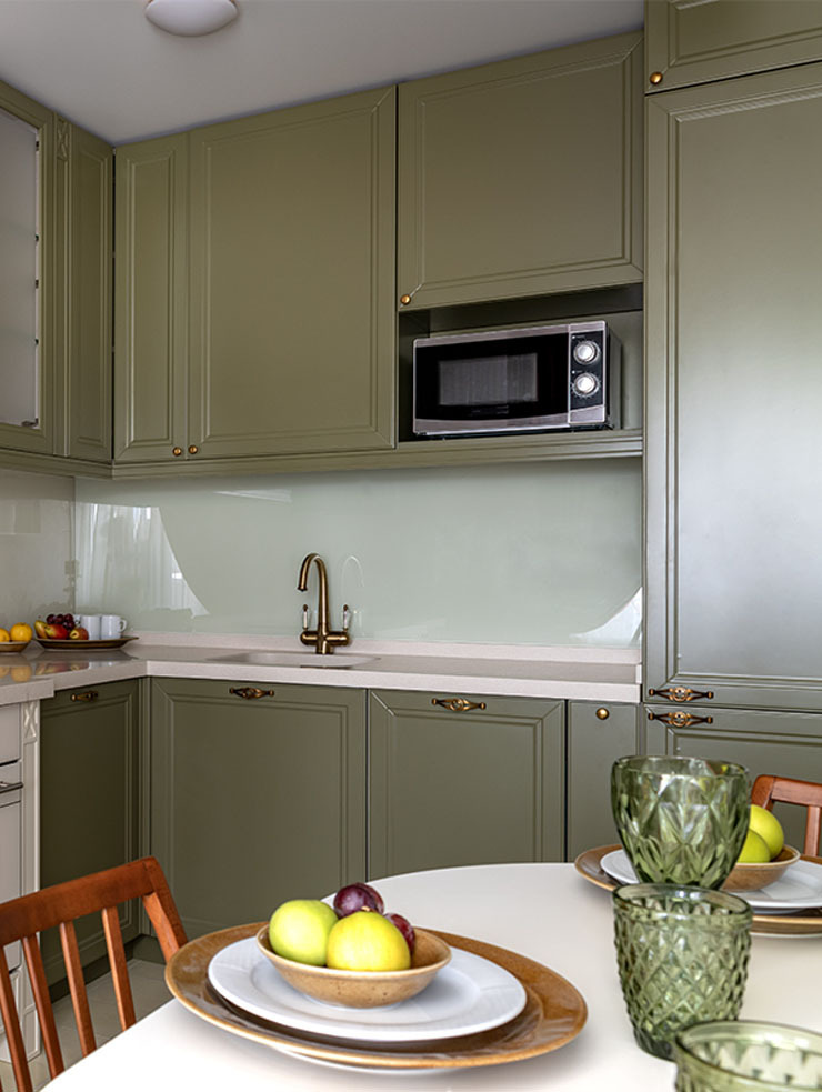 Модель с классическими формами рамочных фасадов из массива ясеня, или из МДФ с матовой покраской. Гармонично подобранный декор элегантных вставок выгодно подчеркивает строгость и изысканность классических линий.