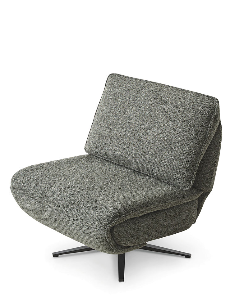 Ellis можно дополнить LED-подсветкой основания и выбрать разные варианты платформ, чтобы подчеркнуть индивидуальный стиль интерьера. Свободная, слегка неформальная обивка добавляет ощущение уюта, сохраняя при этом элегантный внешний вид.
