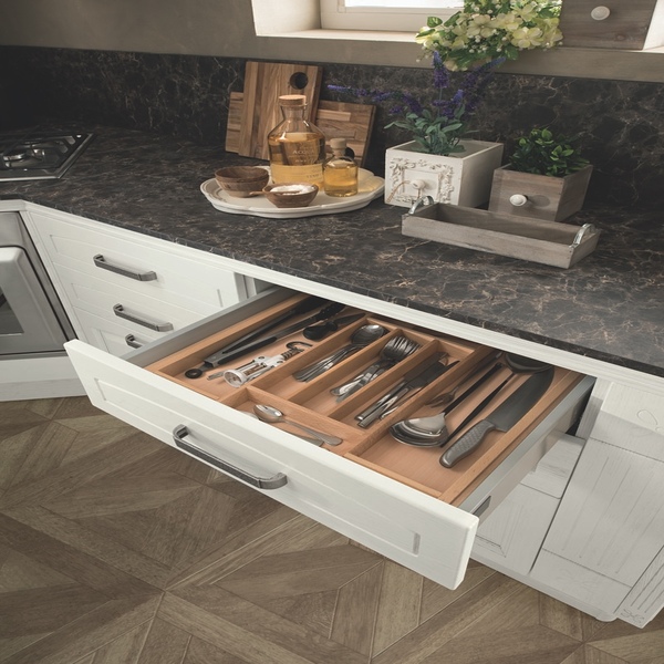 — удобное решение для хранения и организации кухонных принадлежностей. Выполнен из прочного пластика. Подходит для большинства стандартных ящиков.
