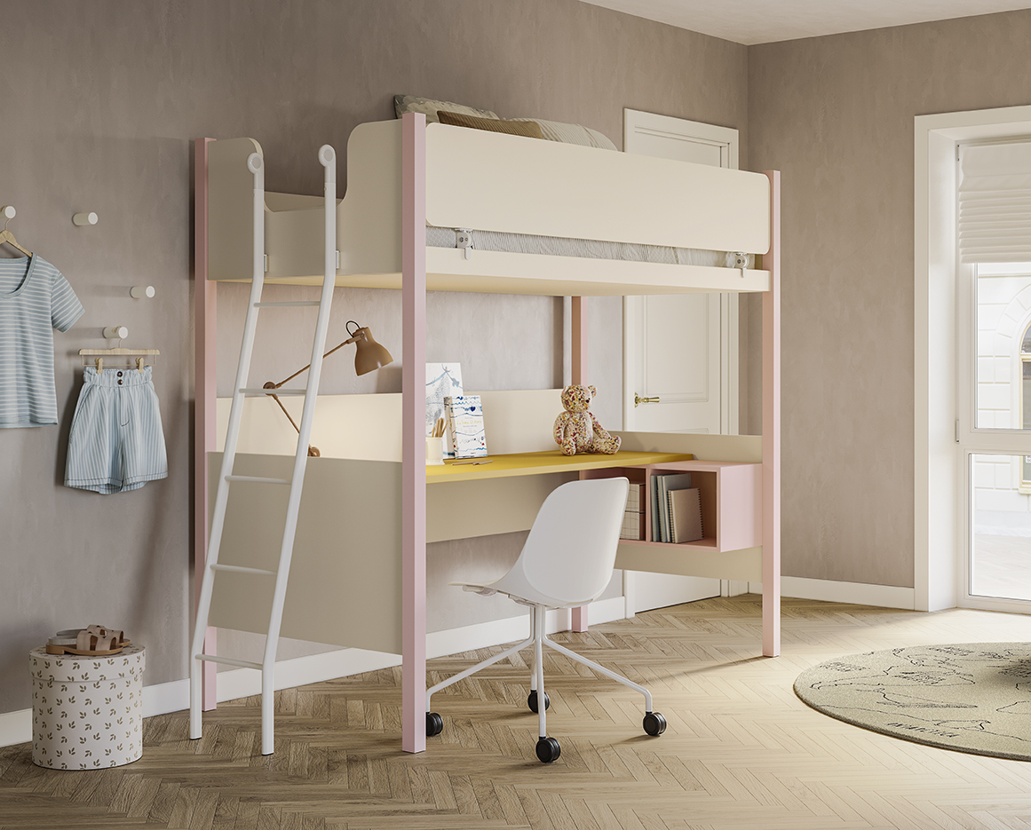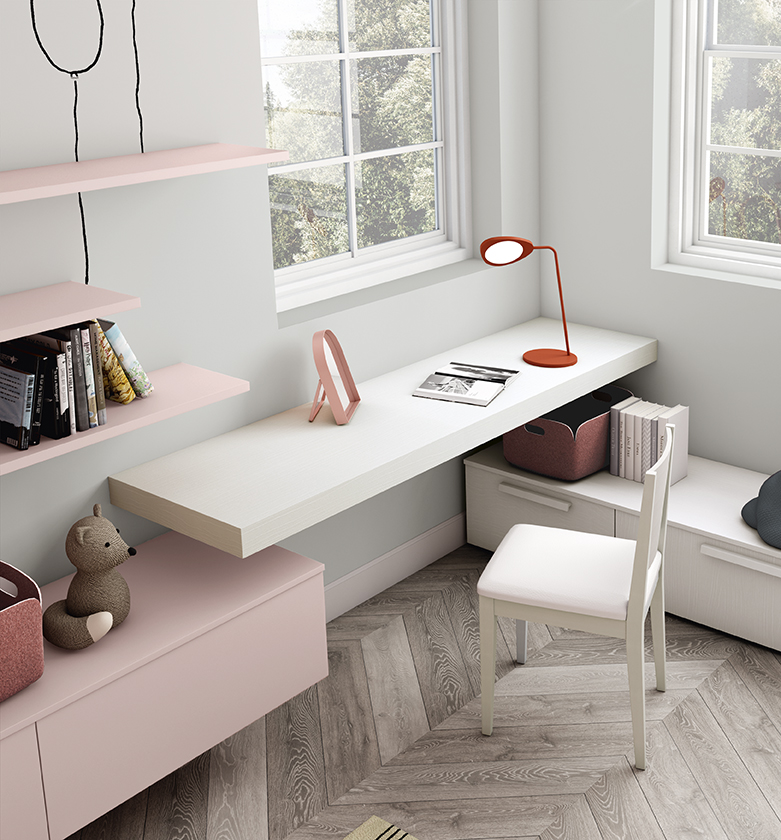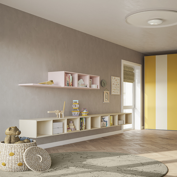 Модули легко трансформируются в зависимости от возраста и потребностей: кровати, рабочие зоны, системы хранения и декоративные элементы можно комбинировать, расширять или переосмысливать. Палитра оттенков и отделок предлагает широкий выбор — от ярких и жизнерадостных до спокойных и зрелых тонов.