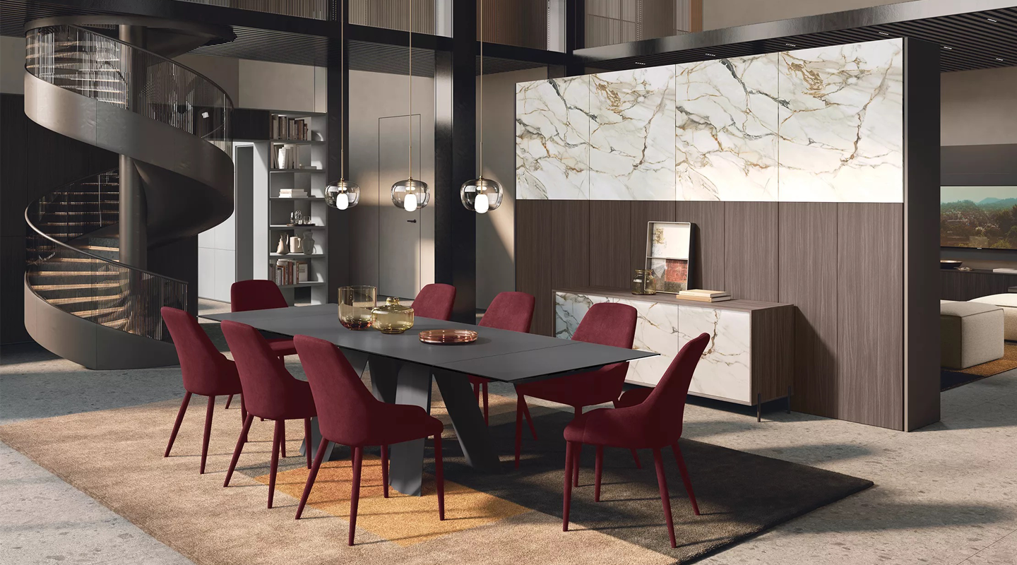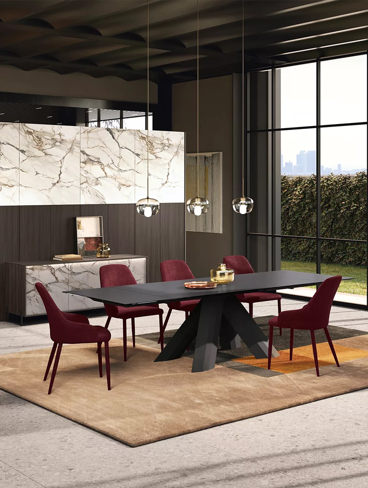 Leeds создан для тех, кто ценит эффектный дизайн и практичность. Его скульптурная опора становится настоящим визуальным акцентом комнаты, а богатый выбор металлических отделок позволяет идеально сочетать его с любым стилем. Прямоугольная или бочкообразная форма, фиксированная или раздвижная конструкция делают Leeds универсальным решением как для повседневных ужинов, так и для торжественных встреч в кругу друзей и семьи.