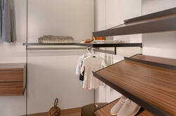 Использование алюминиевого профиля IKS (Италия) в качестве фурнитуры придаёт гардеробной лёгкость, изящество и современный характер.