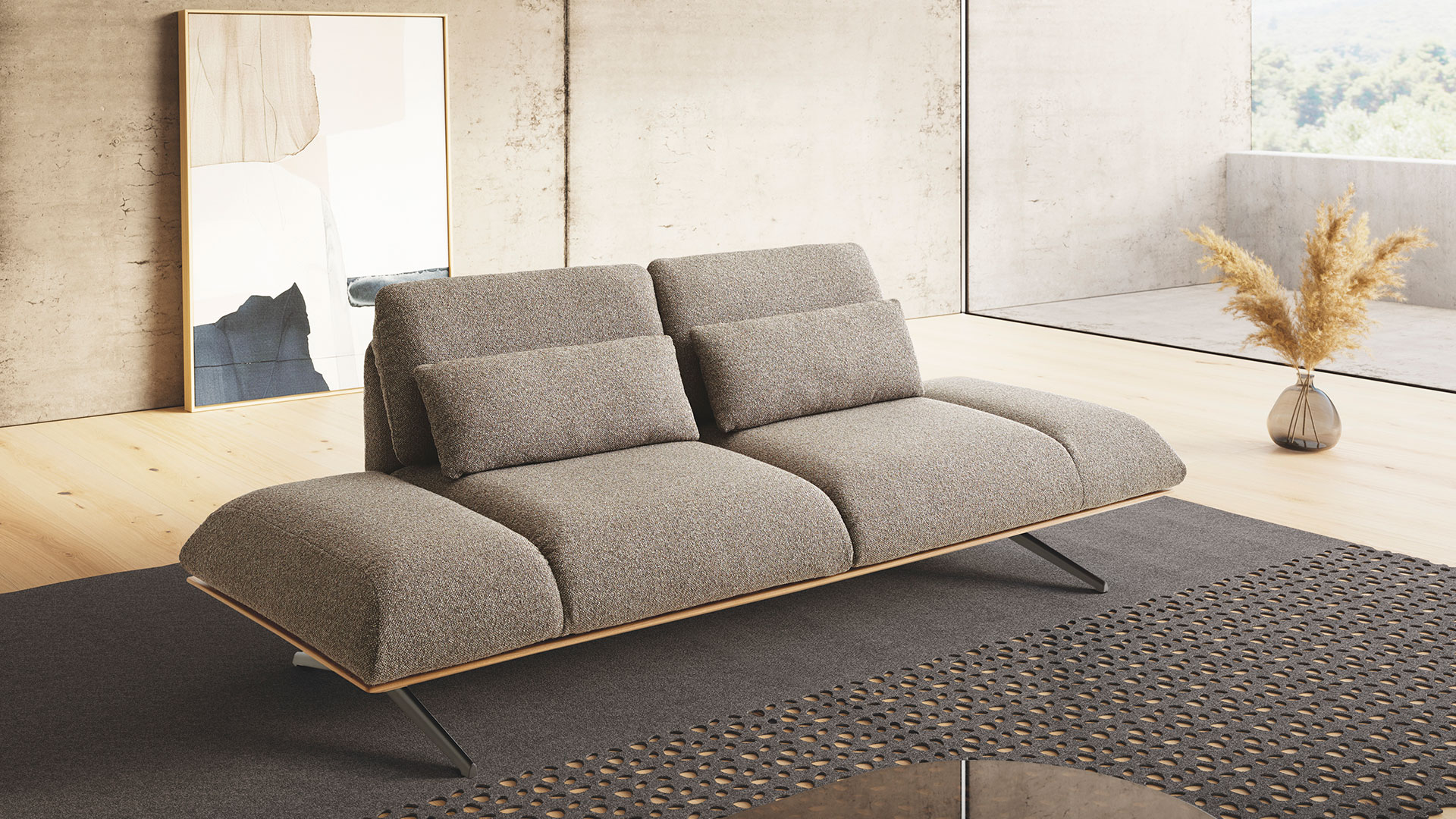 Этот диван создан для тех, кто ценит адаптивность. Регулируемые подлокотники и спинка, увеличенная глубина сиденья и возможность трансформации в шезлонг превращают Fieno в универсальное решение для современного дома.