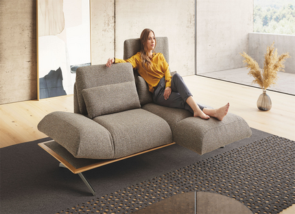 Fieno легко меняет форму: сиденье с поворотным механизмом, регулируемые углы наклона и дополнительный выдвижной подножник обеспечивают комфорт в любой ситуации — от чтения до полного отдыха.