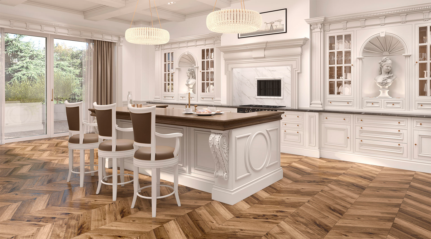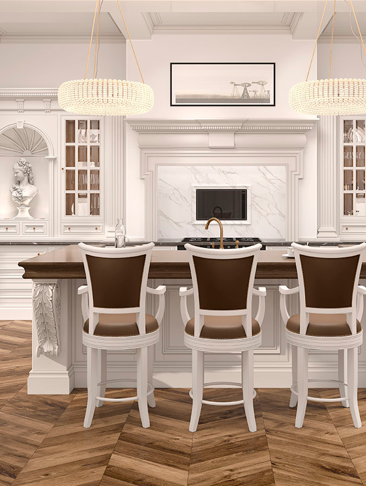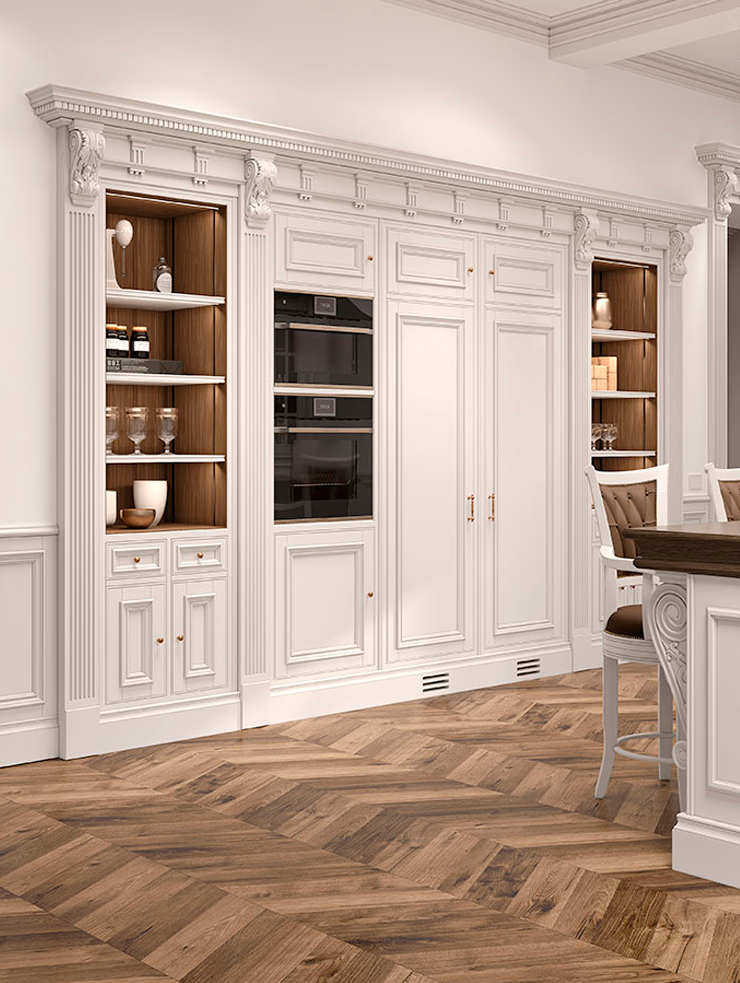 Каждый элемент кухни Asolo — от фасадов до декоративных вставок — рассказывает о мастерстве и любви к деталям. Она не просто красива, она наполнена атмосферой дома с историей.