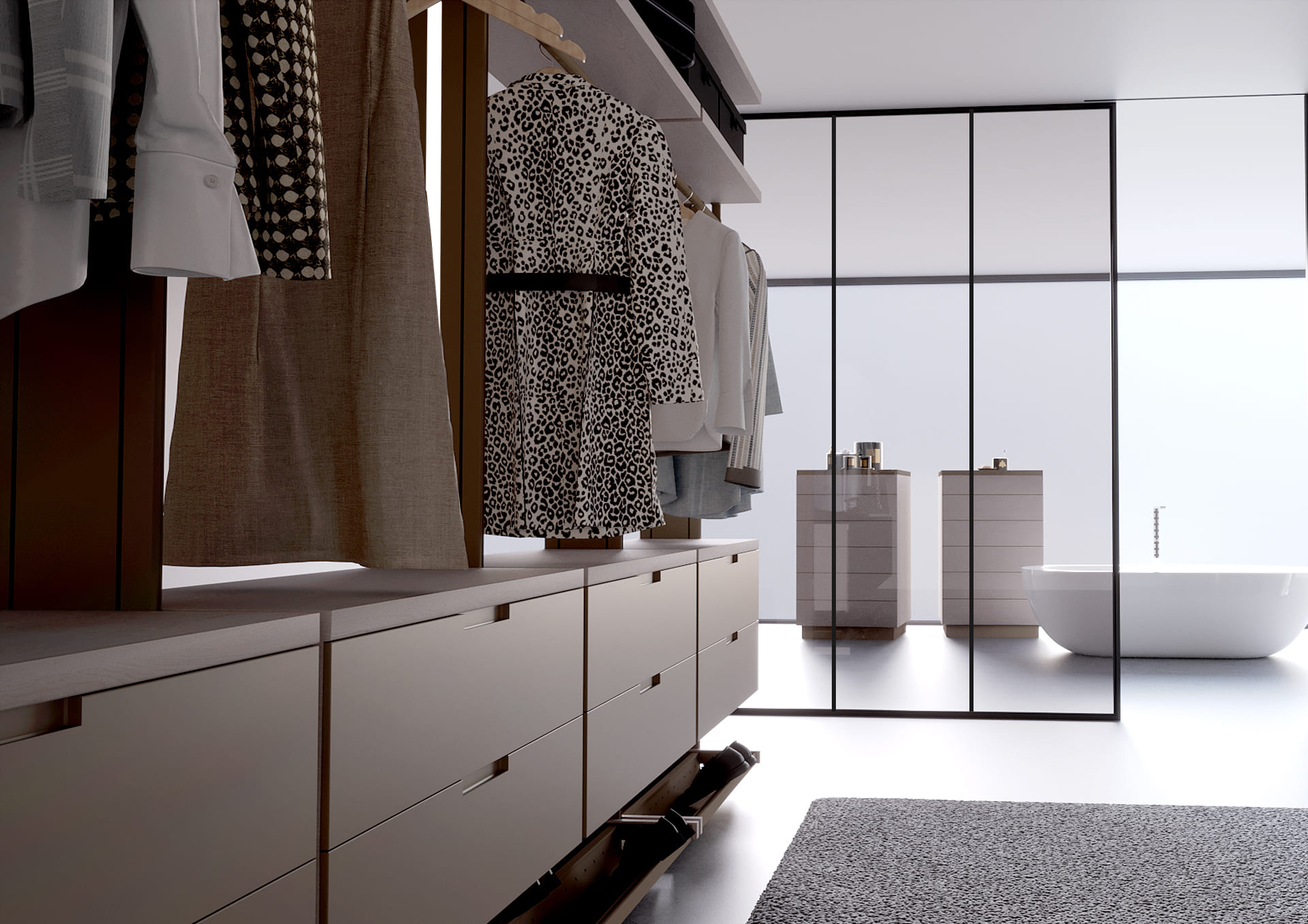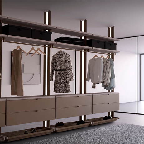 Arezzo сочетает лаконичный дизайн и премиальные материалы, создавая гардеробные, которые выглядят стильно и служат долгие годы. Благодаря продуманным пропорциям система гармонично вписывается в любое пространство.