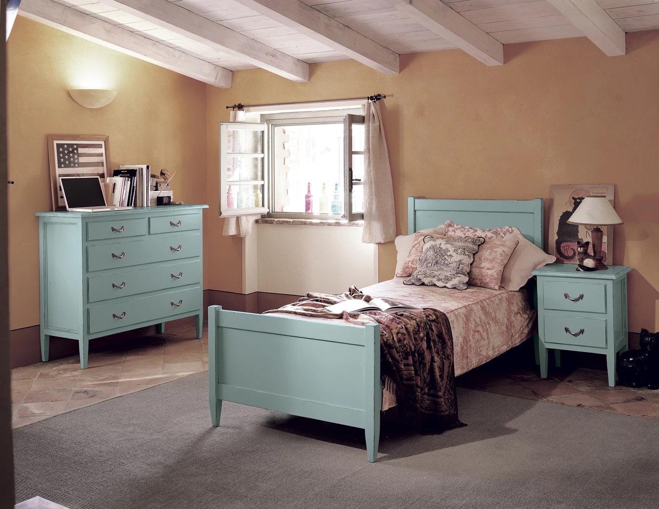 Эта кровать навевает атмосферу старинных загородных домов, где царит умиротворённая теплота и простая прелесть. Доступна в трёх размерах и всех вариантах отделки из коллекций “Glamour” и “Arc en Ciel”, что позволяет легко подобрать её под любой интерьер.