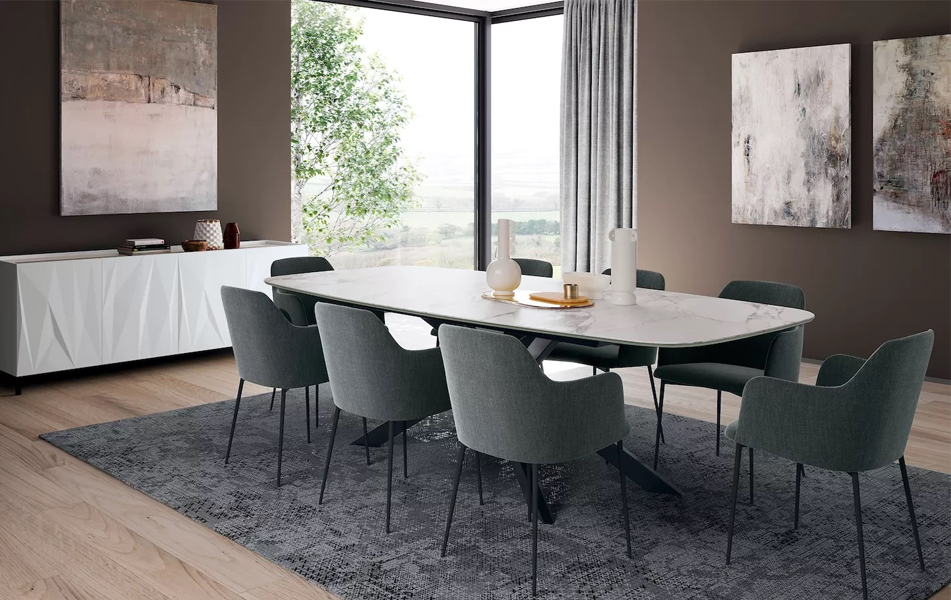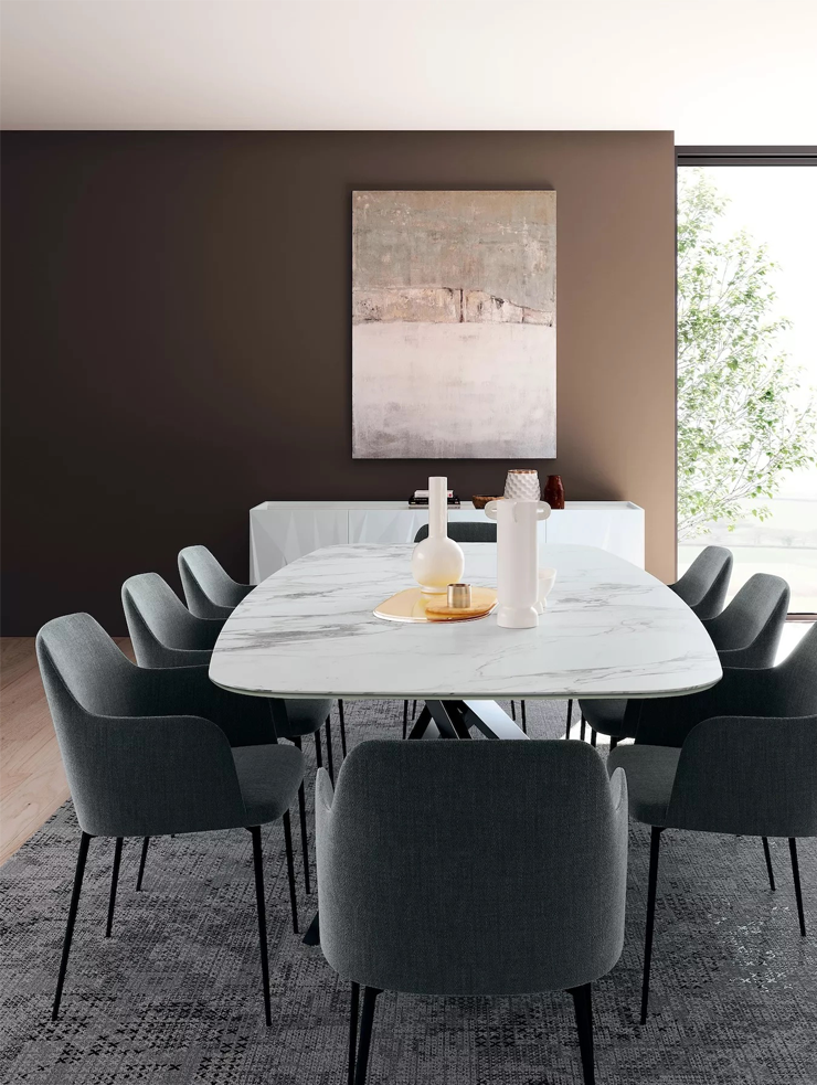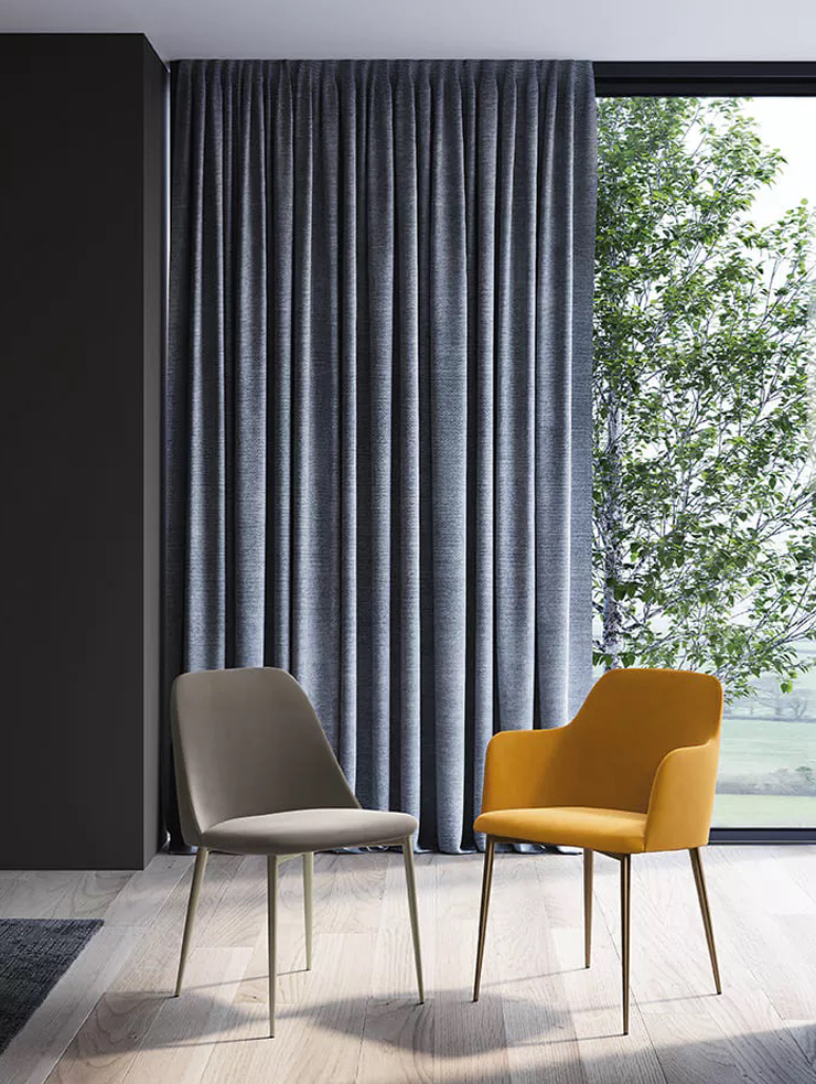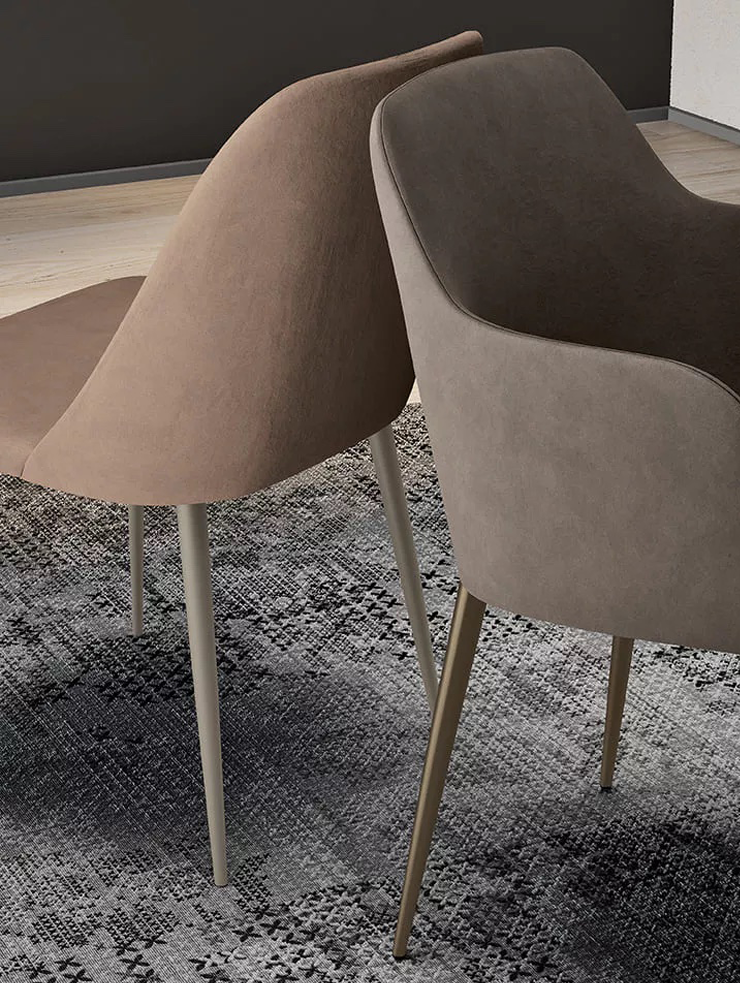 Мягкая обивка и обтекаемые формы делают стул и полукресло Nives воплощением гостеприимства. Эргономичная спинка и удобные подлокотники дарят ощущение обволакивающего уюта, идеально подходящего как для долгих бесед за столом, так и для минут отдыха. Выбор из множества тканей и оттенков, а также ножки в цветах антрацит, чёрный, песочный или тёмная латунь позволяют Nives органично вписаться в любой интерьер и подчеркнуть его характер.
