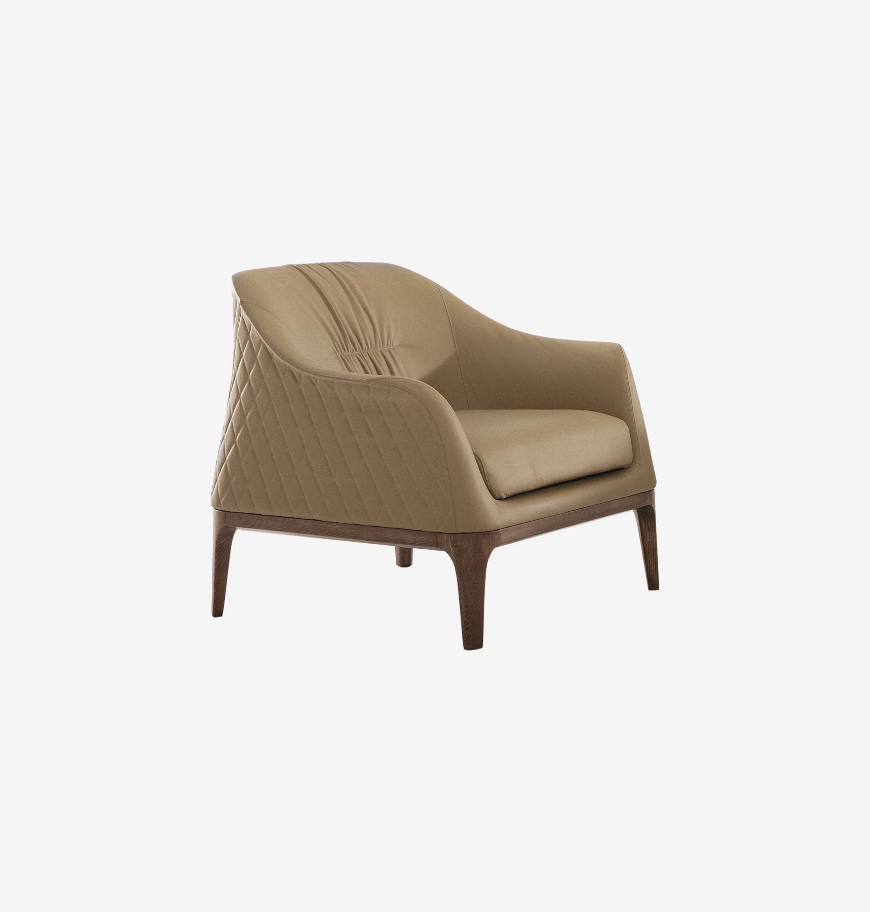 Tiffany, выполненный по эскизам Ангело Томайуоло, воплощает мягкую, деликатную роскошь. Изящное сочетание каркаса из ясеня с отделкой канальетто, черного ясеня или темного дуба гармонично соседствует с обивкой из кожи или экокожи, создавая выразительный контраст текстур и материала. Обивка с капитоне-стёжкой — яркое подтверждение высокого уровня итальянского ремесла, где традиционные техники встречаются с современным дизайном.