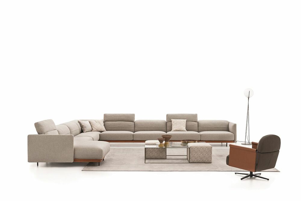 Эта модель привлекает взгляд выразительным горизонтальным силуэтом и тонкими, изысканными подлокотниками, которые придают дивану характер и завершённость. С наклонной спинкой, обеспечивающей удобное положение для отдыха, чтения или общения, Arlott High предлагает идеальный баланс формы и удобства. Вариации дизайна включают версии “напольная” и “на высоких ножках” с металлическим каркасом — лаконично окрашенным или обитым кожей. Модульная и линейная конструкции делают его универсальным решением, создающим атмосферу стиля и непринуждённой роскоши.