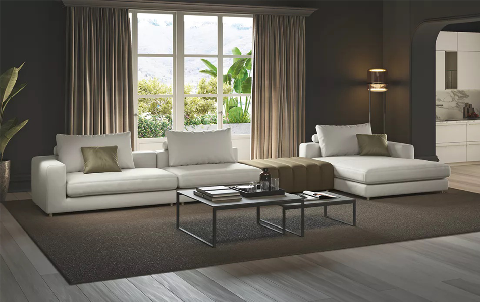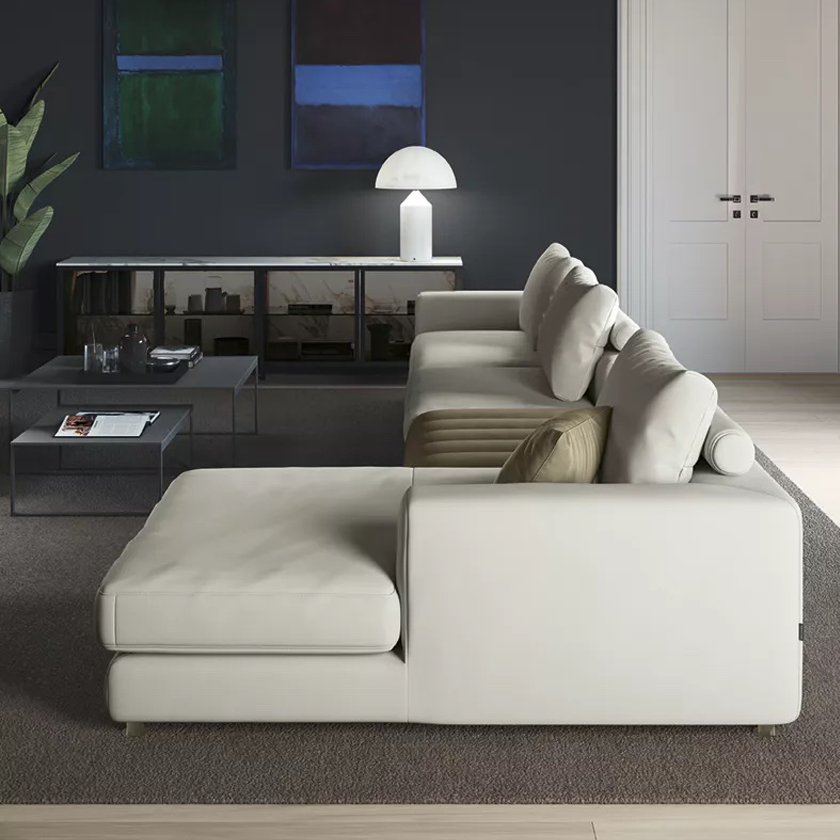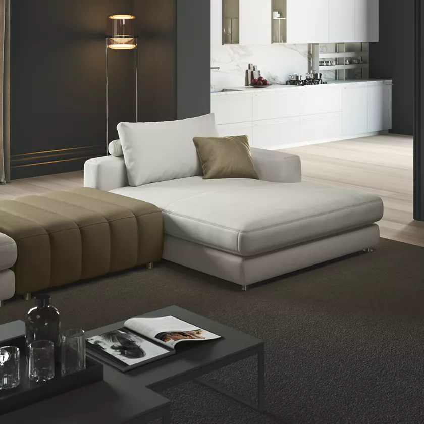 С чёткими линиями, стёгаными акцентами и продуманными пропорциями, Louvre легко становится главным героем интерьера. Его универсальные модули позволяют создавать как угловые, так и продольно вытянутые композиции, идеально вписываясь в пространство и подчёркивая статус владельца.