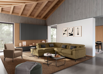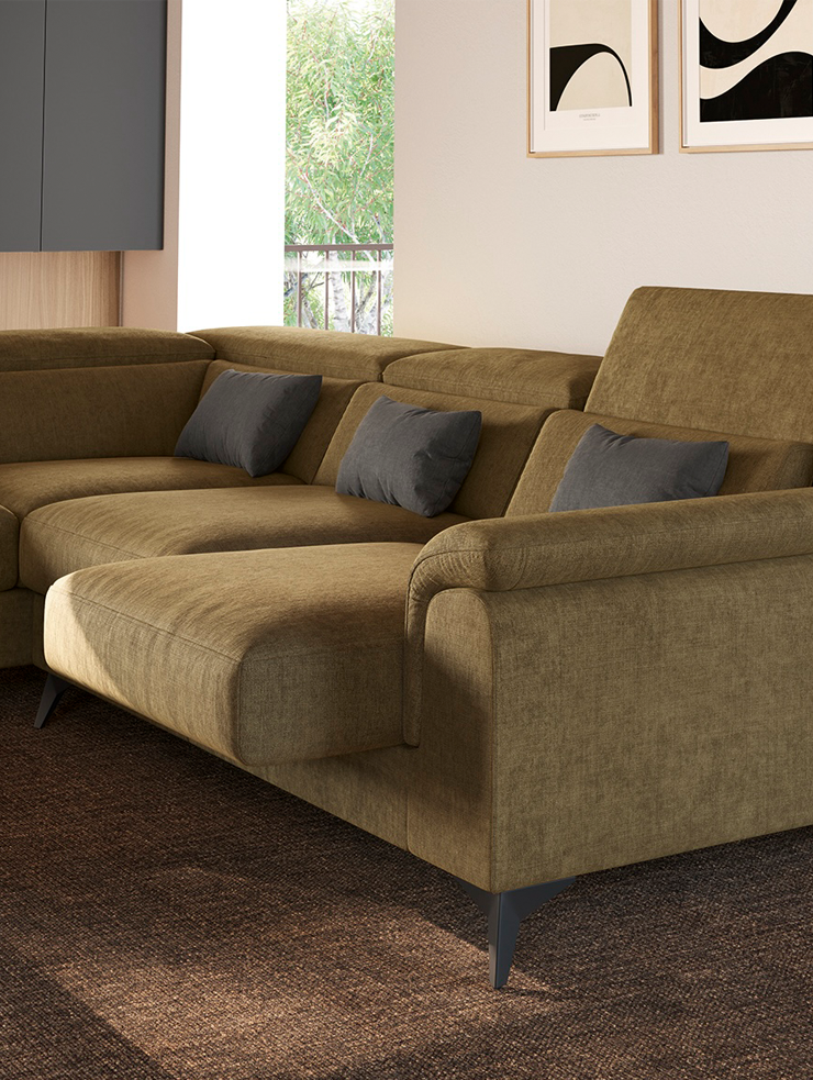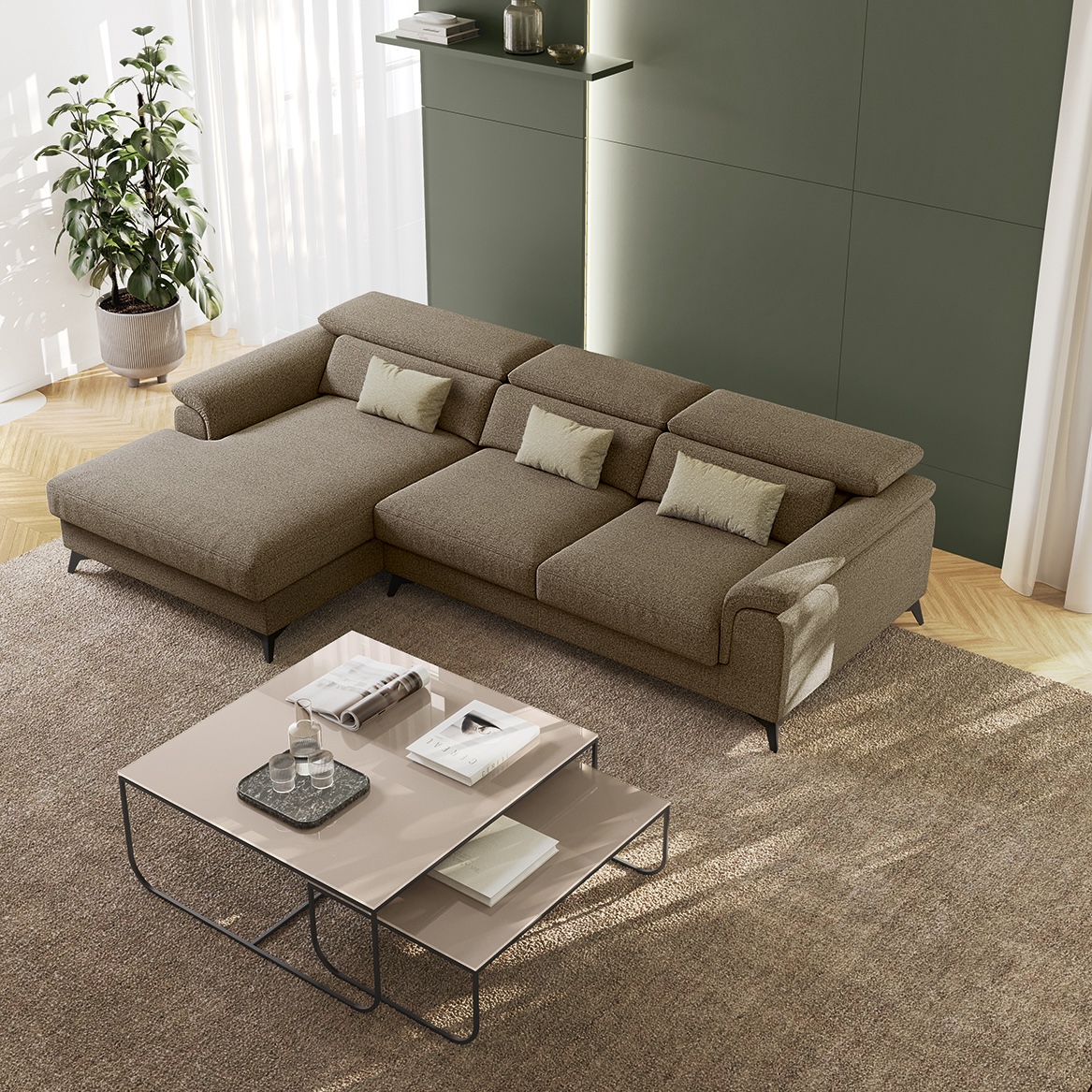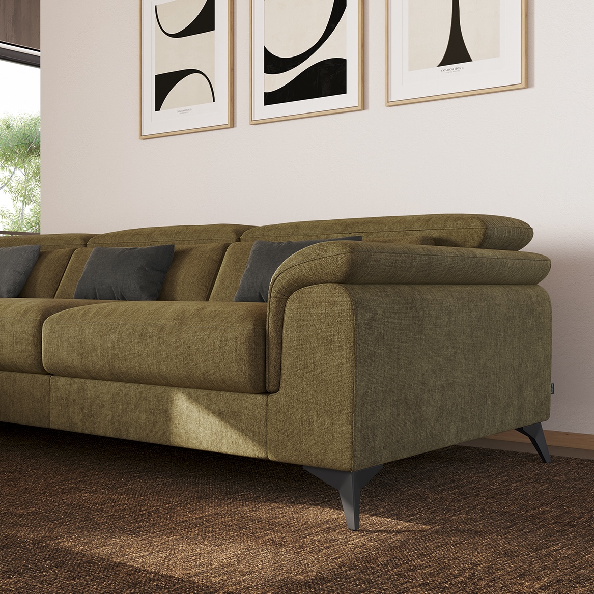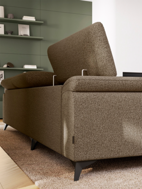 Регулируемый механизм подголовника и раздвижные сиденья позволяют настроить диван под настроение и привычки: от компактной беседы до вытянутого релакса. Всё — ради максимального удобства, не нарушая эстетики.