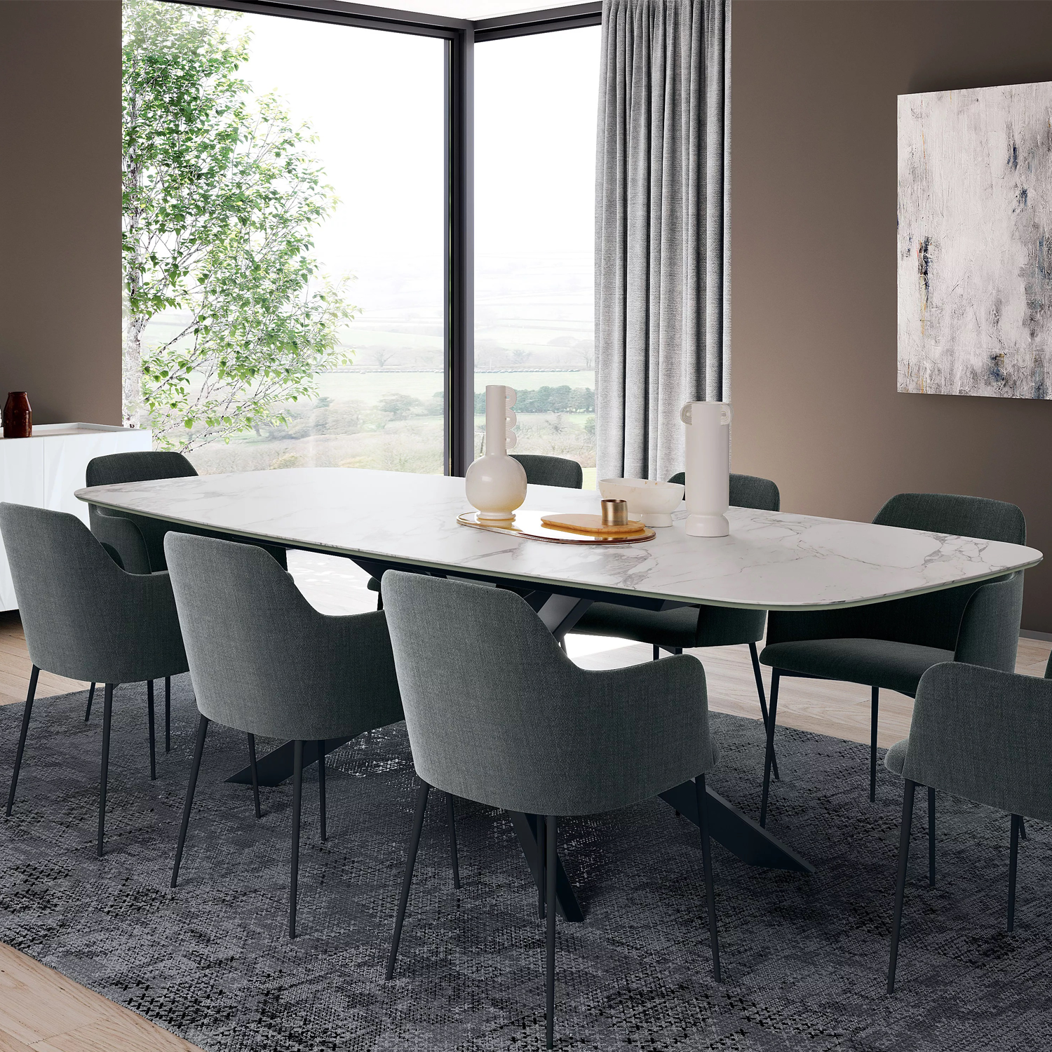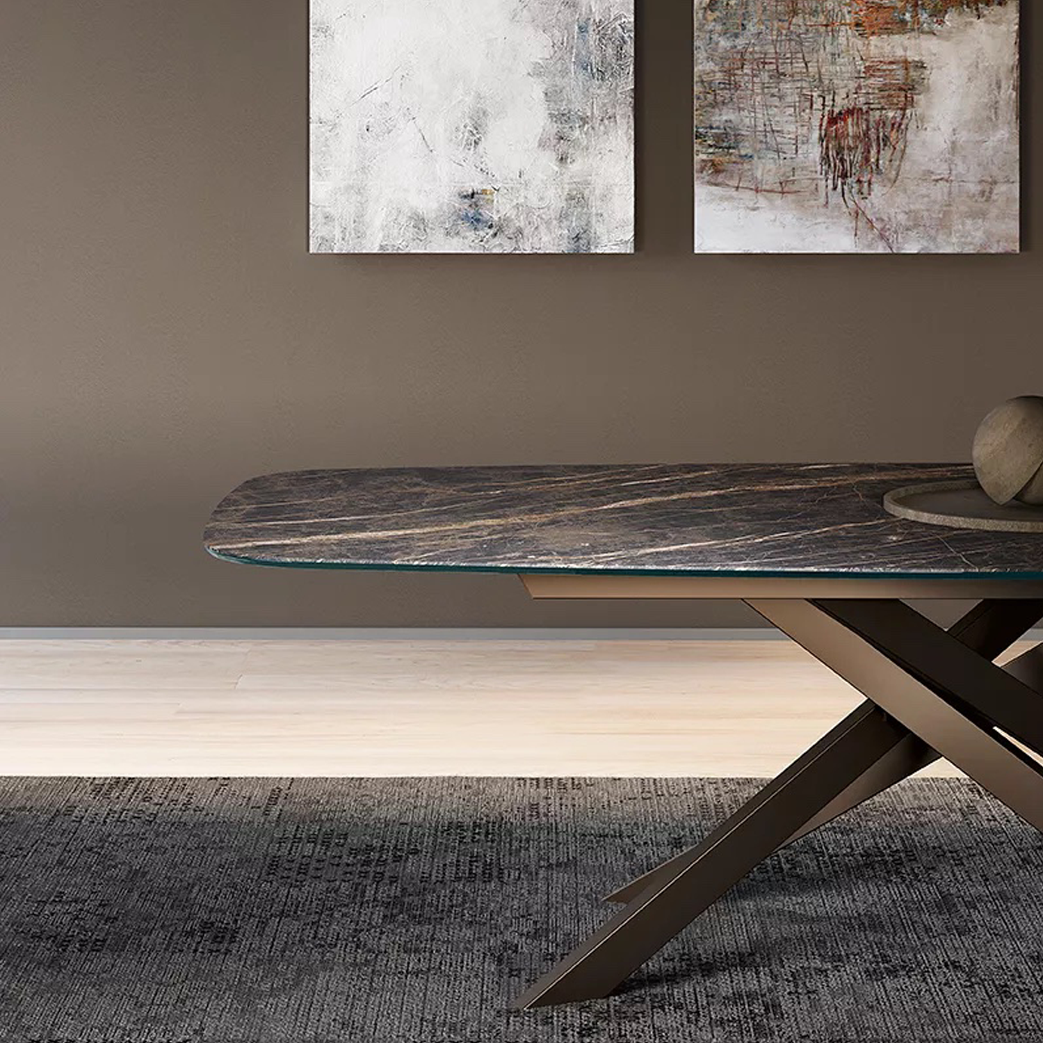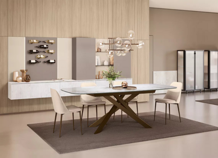 Bliss — это стол, который подстраивается под вашу жизнь и вкус. Его лаконичная металлическая конструкция придаёт лёгкость и современный шарм, а огромный выбор столешниц — от тёплого шпона до сияющего стекла или прочной Superceramica — позволяет создать именно тот акцент, который подчеркнёт интерьер. Форма и размер стола можно варьировать: прямоугольный или в форме бочонка, фиксированный или раздвижной — всё для того, чтобы ужины с близкими стали ещё уютнее.