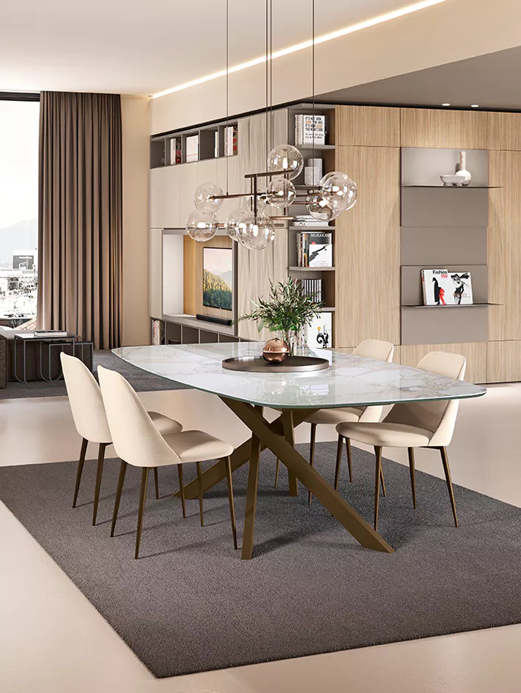 Bliss — это не просто стол, а центр вашего дома, который объединяет людей и создаёт атмосферу. Его минималистичный силуэт подчёркивает богатство материалов: благородный шпон, элегантный кристалл или совершенный Supermarmo. Возможность выбора размеров, форм и отделок делает его идеальным решением для любого интерьера — от сдержанного минимализма до изысканной классики. Функция раздвижения открывает пространство для больших встреч и особых событий.